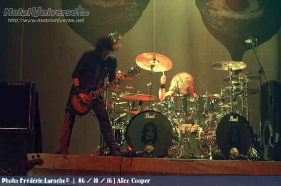 Même une légende comme Alice Cooper n’est rien sans de bons musiciens. Heureusement, il est accompagné par les meilleurs du métier! Le batteur Eric Singer est absolument brillant et est l’un des rares batteurs de qui on peut dire qu’il est divertissant à regarder jouer! Les guitaristes sont précis et charismatique. Alice, de son côté, leur laisse toute la place pour briller et se mettre en valeur! D’ailleurs, la foule a eu droit à un superbe jam instrumental de près de 10 minutes incluant un solo de batterie plus qu’adéquat.
