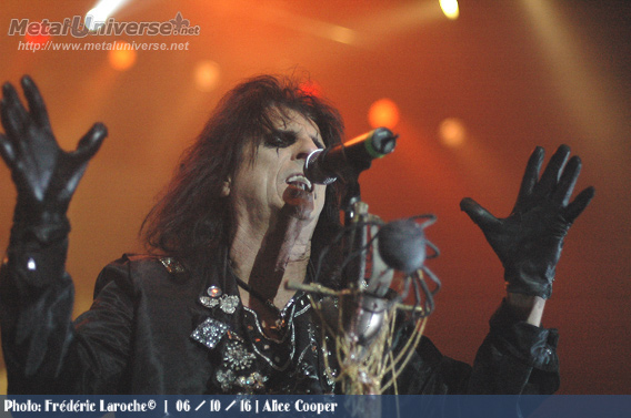 Quel mois d’octobre chargé pour l’équipe de Metaluniverse.net! D’abord, Iron Maiden nous visite pour deux dates au Québec, sans compter le nombre de shows de petit et de moyen envergure que nous avons eu le plaisir de couvrir, c’était le tour de la légende Alice Cooper de nous visiter! En plein lundi, le Théâtre St-Denis était bondé de 1500 fans criant pour l’arrivée du chanteur aux côtés théâtraux très accentués. Lumière, Alice fait son entrée sur scène avec ses musiciens et le spectacle commence…