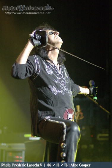 D’abord, ceux qui croient que l’homme a vieillit et qu’il n’est plus capable de donner un bon show, oubliez cela tout de suite. Alice Cooper est encore réellement en forme et a une présence incroyable sur une scène qu’il occupe de fond en comble. Le charismatique chanteur fait les mimiques, les gestes, les chorégraphies qui l’ont rendu célèbre. Une épée d’escrime sur laquelle sont empalés des dizaines de billets d’argent pendant Million Dollar Babies, un assemblage de corps sanglant dans Feed My Frankeinstein… tout y était! Vocalement, Alice a encore 20 ans et sa voix est impeccable.