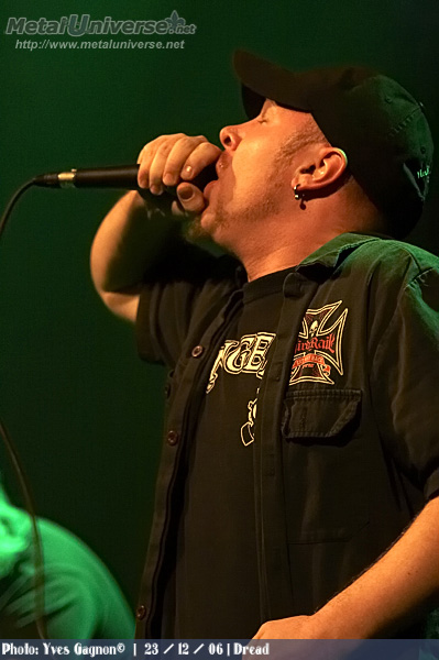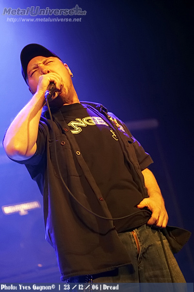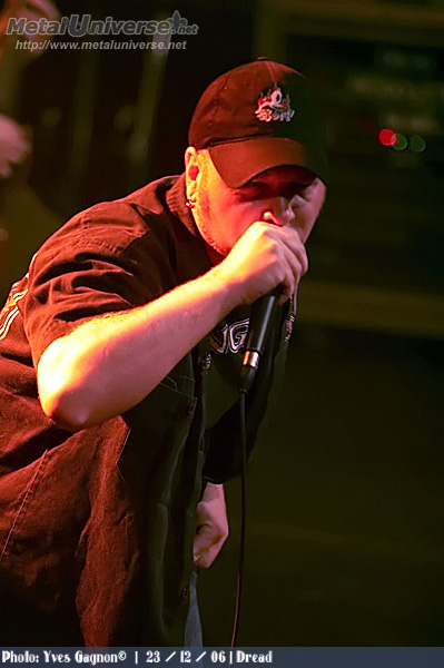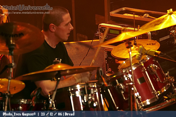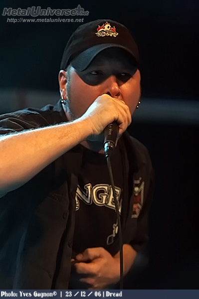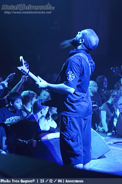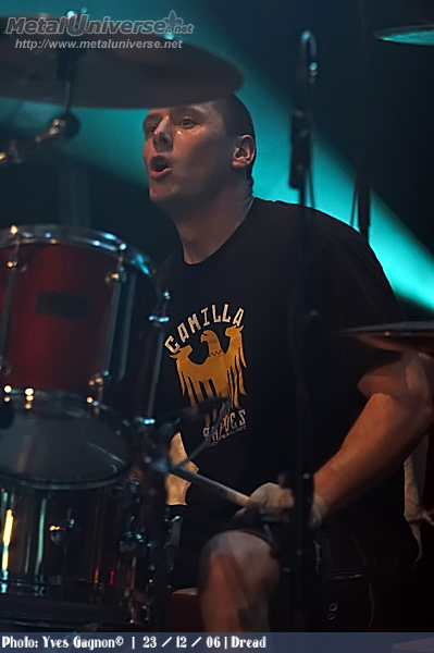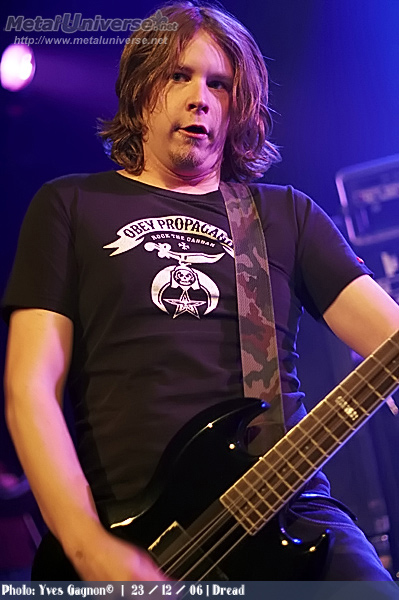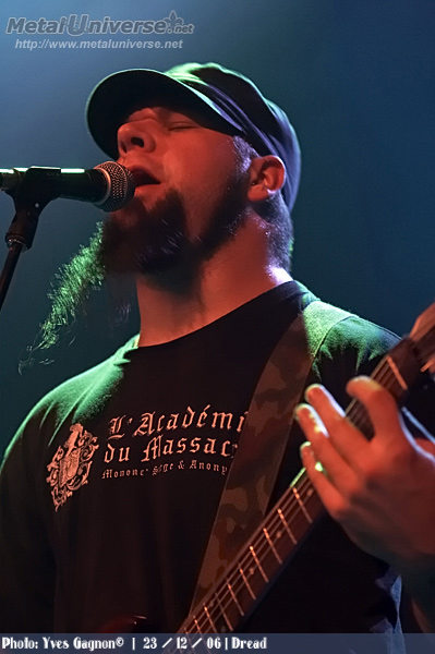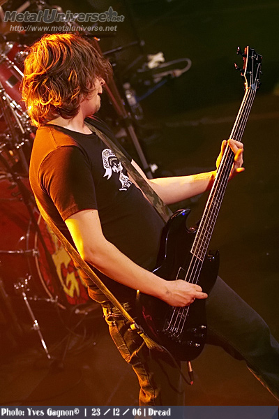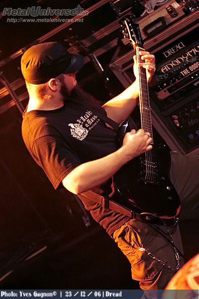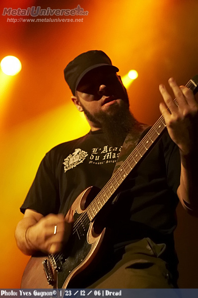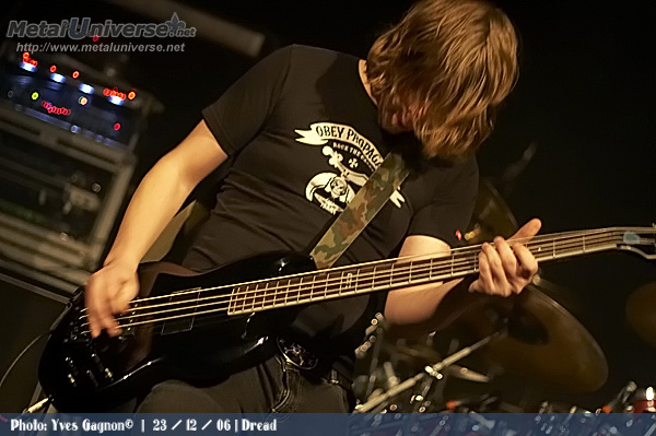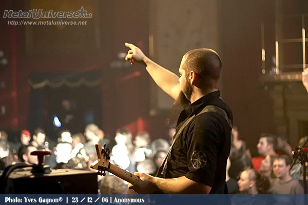 Cette crainte prit de l’ampleur lorsque le groupe Dread embarqua sur scène. Il y avait à peine une centaine de personnes présentes dans la salle et le parterre était presque vide. Faisant ce pour quoi ils étaient venus, ils nous ont présenté leur musique. C’est du metalcore avec de fortes influences death, très technique et occasionnellement accrocheur. Les membres bougeaient beaucoup sur scène, spécialement le bassiste, et le chanteur faisait tout pour faire embarquer la foule. En vain puisque la foule était beaucoup trop petite. Par contre, les amateurs de death ont semblé apprécier leur performance. J’aurais tendance à dire que ce n’est pas le groupe approprié pour faire la première partie d’Anonymus, le style est trop différent, si Dread n’était pas le groupe du guitariste live d’Anonymus.