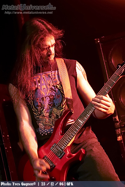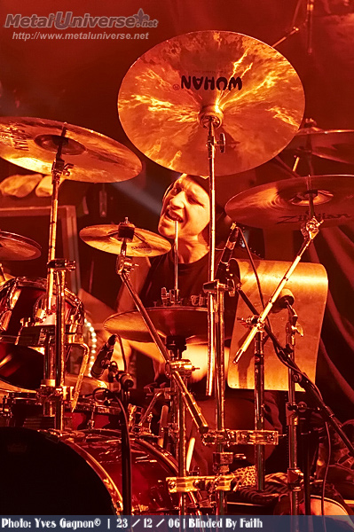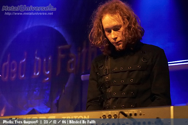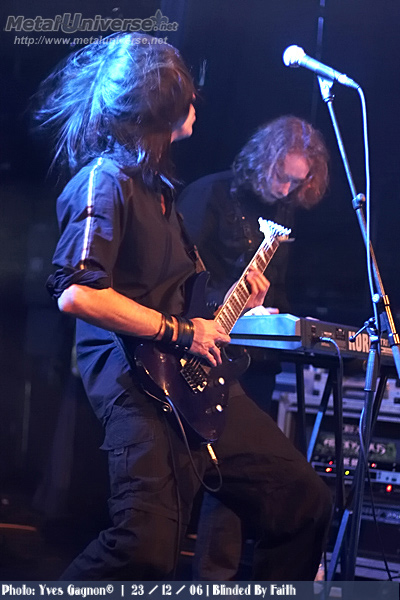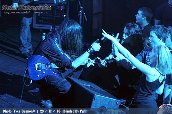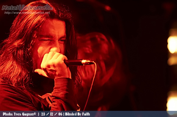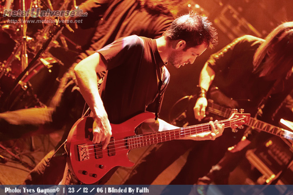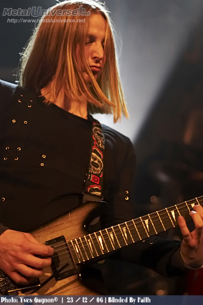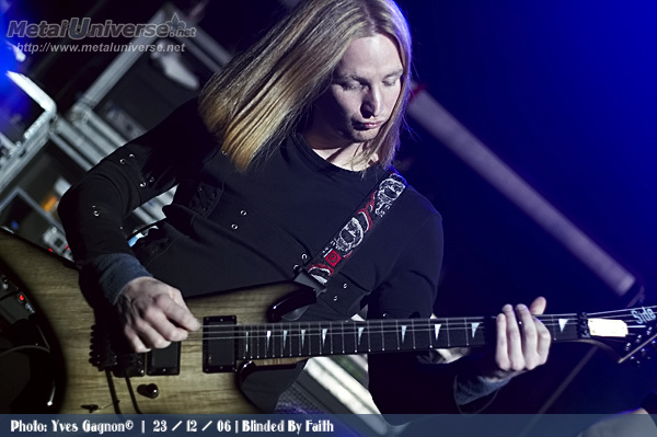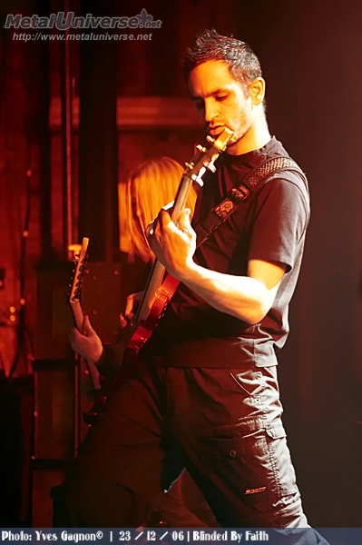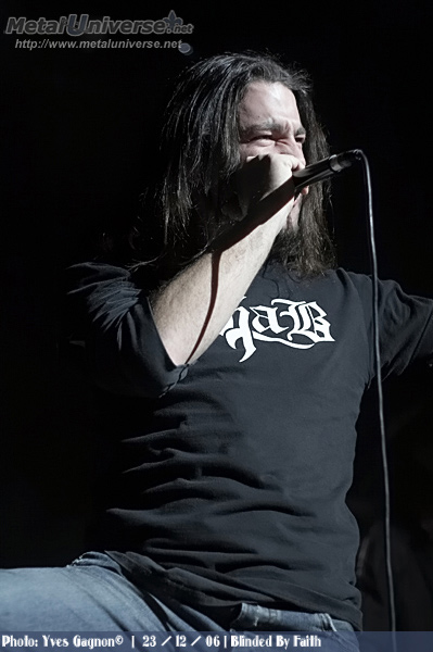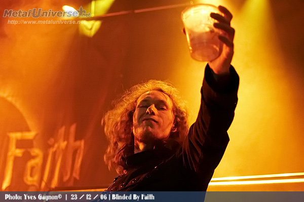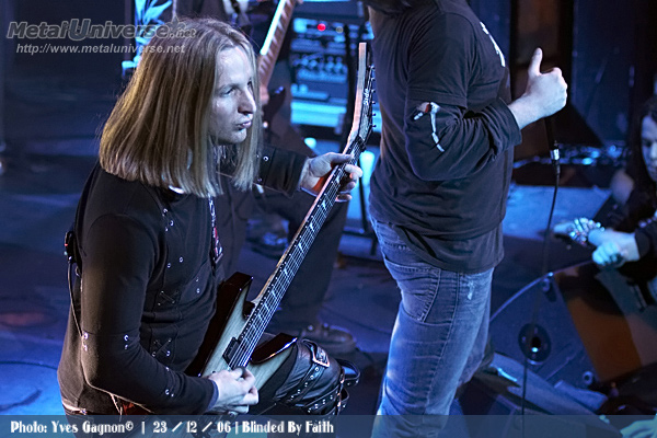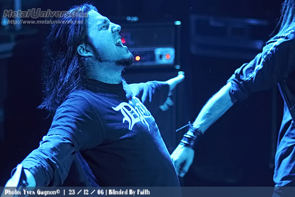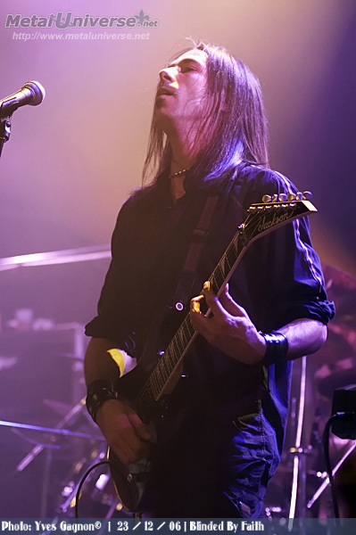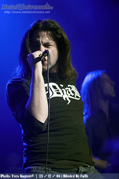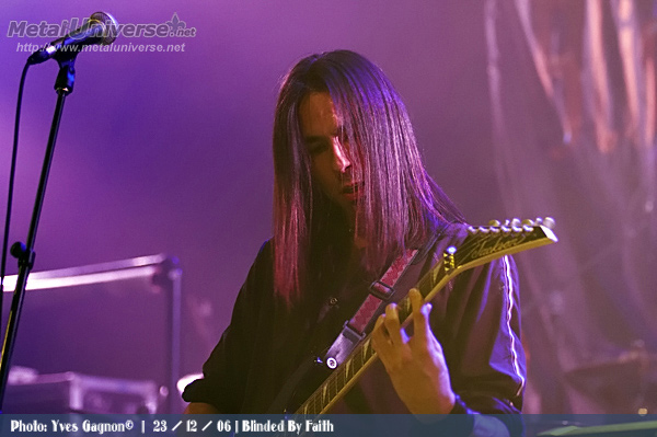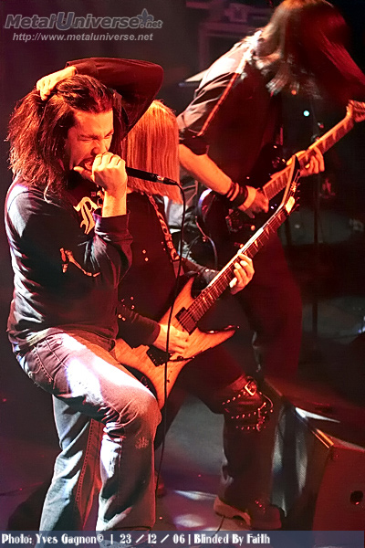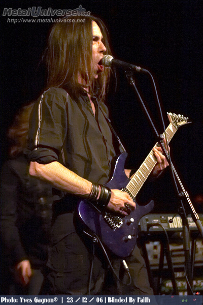 Pour le groupe de black metal mélodique Blinded By Faith, la foule commença à grossir. Ils ont joué quelques pièces de leur album « Under an occult sun » et deux qui vont paraître sur leur second. La performance des musiciens a été très bonne même si leur jeu semblait décousu vers la fin. La foule se laissa guider par le charisme du chanteur dans des thrashs très intenses. Faut dire qu’il nous avait ordonné de nous donner à fond auparavant. Par contre, le son n’était pas aussi bon que ce que l’Impérial nous a habitué. On perdait le chanteur quelquefois et le clavier était inaudible tout le long du spectacle. C’est dommage puisque c’est une des forces du groupe, ça donne de la puissance à leurs pièces. Une pièce comme « A perfect imperfection » en souffrait énormément. Après avoir vu également leur prestation en première partie de Malmsteen, il m’en reste encore à entendre pour être totalement convaincu. Un spectacle dans lequel ils seront « headline » comme le lancement de l’album à venir pourrait aider. Il serait bien aussi de voir quelle direction musicale ils prendront. Avec les deux pièces présentées lors de la soirée, c’était moins black et un peu plus death. Une histoire à suivre donc.