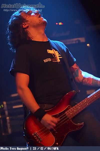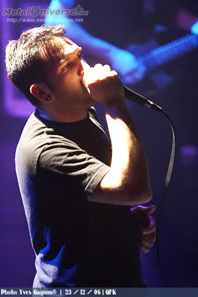 Le second groupe de la soirée a été la formation de hardcore GFK. Les fans qui sont venus spécialement pour eux organisèrent quelques thrashs ce qui commença à réchauffer la foule. Toutefois, leurs pièces sont plutôt semblables. Au niveau du drum et du « scream » il n’y a guère de différences entre la fin d’une pièce et le début de la suivante. Les amateurs de hardcore pourront les revoir au bar l’Échouerie le 9 janvier.