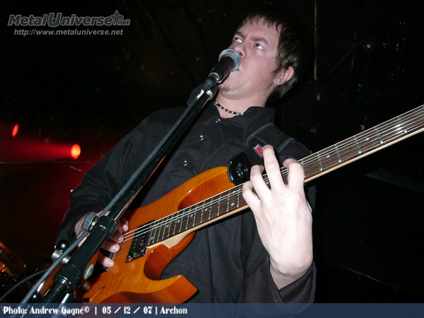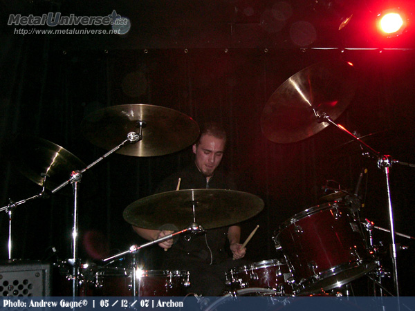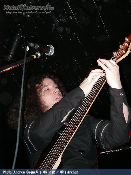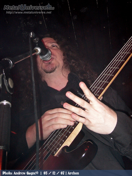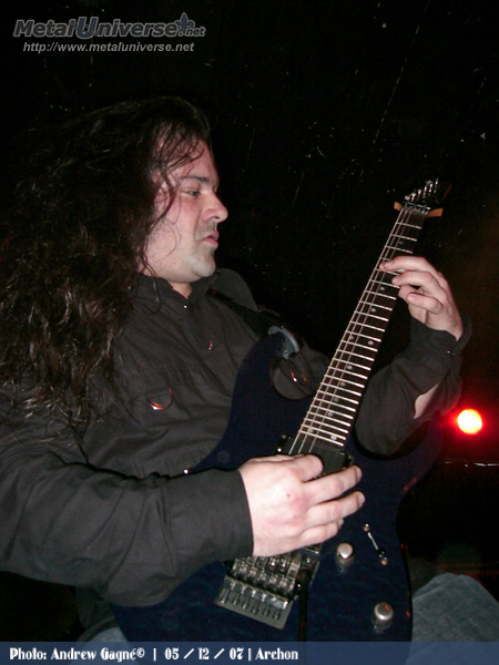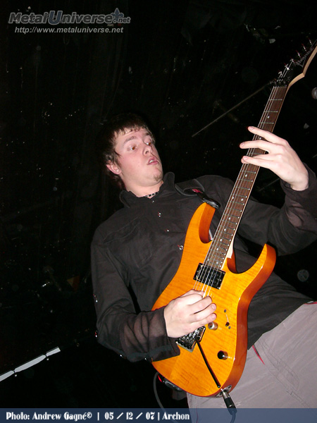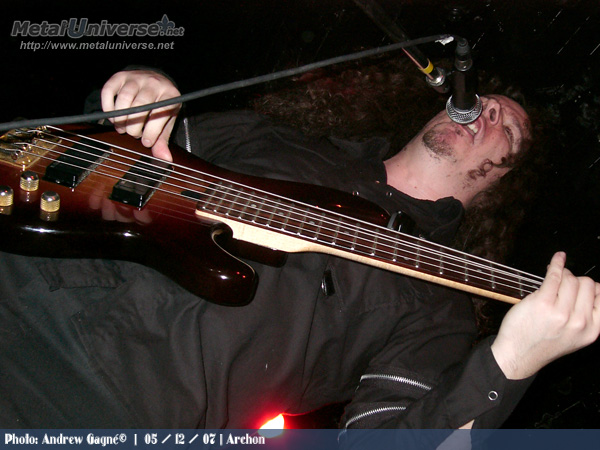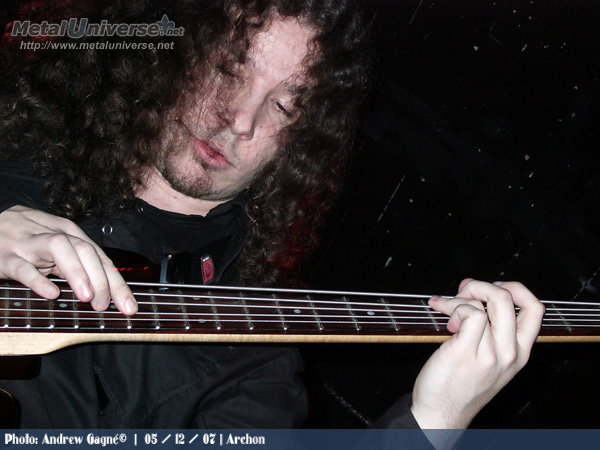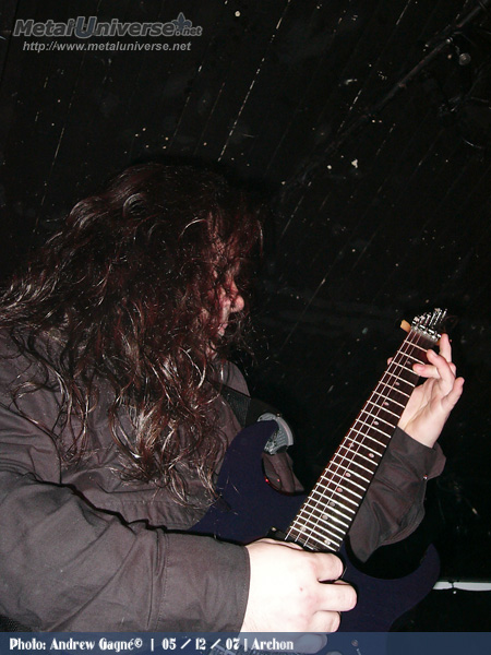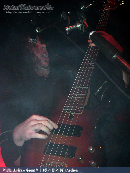 Les gars d’Archons sont les premiers à prendre place sur scène devant un public plus que prêt. Archons est un nouveau groupe de death metal formé de trois anciens membres de Descend Into Nothingness (R.I.P.) qui sont Sébastien Audet au vocal et à la basse, Simon Charrette à la guitare et Christian Poulin à la batterie. Le groupe compte également un second guitariste du nom de Francis Beaulieu. Dès le début de l’intro, les amateurs présents offrent un bel accueil à Archons et quand le groupe enchaîne sur « Delusional Beliefs », la réponse est tout simplement excellente. Les musiciens possèdent un très bon niveau technique, ce qui donne droit à une exécution sans reproche. En plus des deux pièces qui se retrouvent sur leur démo, le groupe joue trois autres chansons que nous pourrons entendre sur leur premier album au cours de l’année sur Cryogenic Records. Archons décident de terminer le tout avec la pièce « Beyond Anger » en rappel mais à la condition qu’un jeune spectateur présent crie. Finalement, sous la forte pression, il s’exécute et nous avons droit au rappel. Je suis convaincue qu’après une prestation comme celle-ci, nous reverrons le groupe au Saguenay au cours de l’année et cette fois devant plus de monde. Mon coup de cœur de la soirée!
