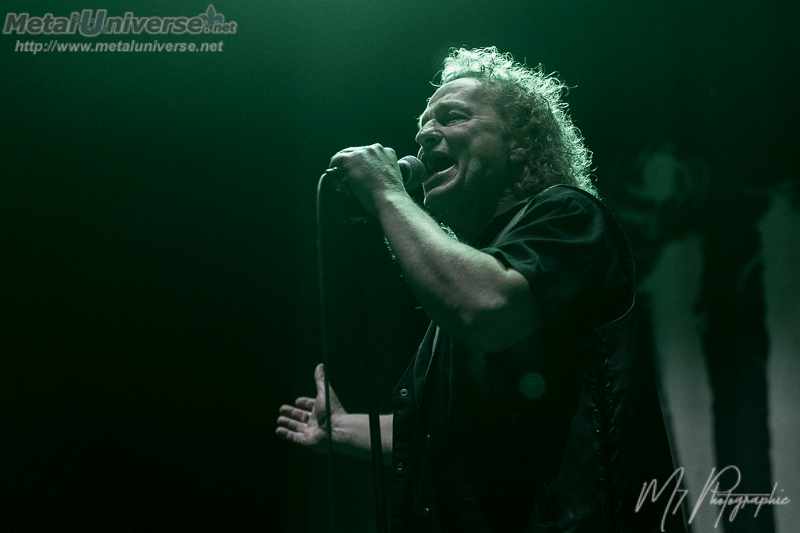 Ensuite, c’est le groupe thrash metal progressif de Jonquière VOIVOD qui avait la tâche de poursuivre la soirée. La troupe composée du chanteur Denis « Snake » Bélanger, du batteur Michel « Away » Langevin, du guitariste Daniel « Chewy » Mongrain et du bassiste Dominic « Rocky » Laroche a été ajoutée quelques semaines avant le spectacle, mais ils ont réussi à jumeler le tout à une soirée bien spéciale pour eux. Cette prestation était la toute dernière de leur spécial 40e anniversaire, alors une dernière chance de célébrer! Les premières notes se sont faites entendre peu après 19h05. Dans les premiers instincts, la foule semblait plus « calme », tout en demeurant bruyante. Bref, beaucoup de bruit, mais moins active dans le parterre. Un show de VOIVOD plus tranquille? C’est hors de question! Avec leur expérience, ils ont su rapidement reprendre le contrôle et les bras de se sont levés. À grand coup de « Hail, Hail, Hail » et d’échanges avec le public, Snake a fait du très bon travail pour aller « chercher son public » un à un. Est-ce que ses interactions en français, notamment sur l’histoire du thrash metal, ont aidé davantage? Sans aucun doute! Ça peut sembler banal, mais c’est toujours agréable de réussir à voir ce genre de détails et ça démontre la proximité des musiciens entre leurs fans. « On le sait que vous êtes là. »