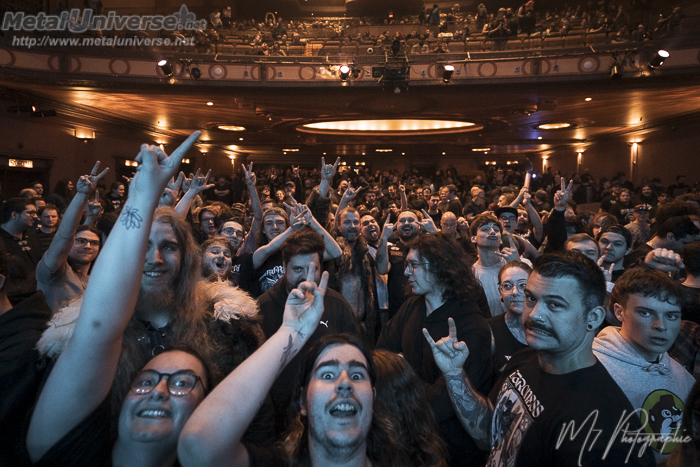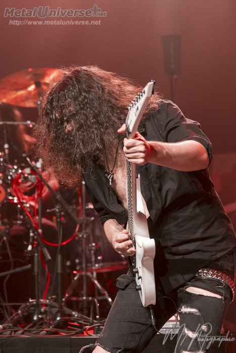 C’est avec un enthousiasme rarement vu à Québec que les nombreux fans qui se sont déplacés accueillent Wind Rose, visiblement attendue de pied ferme. Dès l’entrée en scène des membres du groupe, les amateurs sont très bruyants, et ils le seront d’ailleurs tout au long de la soirée. Army of Stone ouvre le bal et immédiatement, tous sautillent en choeur au son épique de leurs favoris. Fellows of the Hammer suit et spontanément, un immense rowing pit est formé par les amateurs; le spectacle n’est pas vieux de deux pièces que déjà, l’ambiance est complètement hallucinante. En fait, ce qu’il faut comprendre si vous n’avez jamais vu Wind Rose live, c’est qu’on y retrouve une synchronicité formidable entre les membres du groupe, qui semblent ne faire qu’un. Les back vocals se mélangent constamment à la voix de Francesco Cavalieri, qui est un merveilleux frontman. Le tout donne un résultat qui n’est pas sans rappeler l’énergie contagieuse que Sabaton présente sur scène, et je parierais un vieux gilet de Blind Guardian que Wind Rose deviendra un des groupes phares dans le power metal d’ici 4 ou 5 ans au maximum. Un mosh pit massif et festif est formé durant Drunken Dwarves, et les pics gonflables s’agitent ensuite durant Mine Mine Mine. Cavalieri interagit régulièrement avec la foule entre les pièces, ce qui fait réagir à tout coup. Durant les pièces, les amateurs sont très actifs. Tel que mentionné plus tôt, on voit des mosh pits, des rowing pits, on saute, on lève le poing au ciel, on s’époumonne… Fou raide! La majorité des pièces sont tirées de Warfront et elles sont toutes plus épiques les unes que les autres, mais évidemment, c’est Diggy Diggy Hole qui fait le plus réagir, pièce absolument parfaite pour un spectacle comme celui-ci. La portion techno de celle-ci est évidemment le moment qui fait éclater le toit de l’édifice tellement l’ambiance est électrisante. Ambitieux, le groupe propose en terminant Tomorrow Has Come, douce mais tellement puissante à la fois, et conclut avec I Am the Mountain, qui est absolument incroyable; frissons garantis.