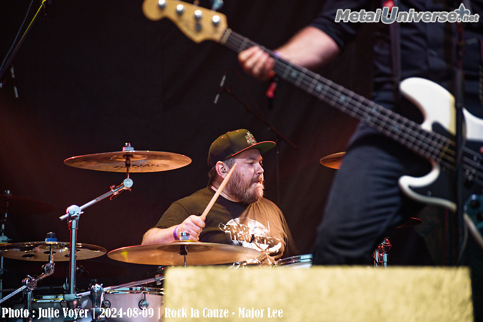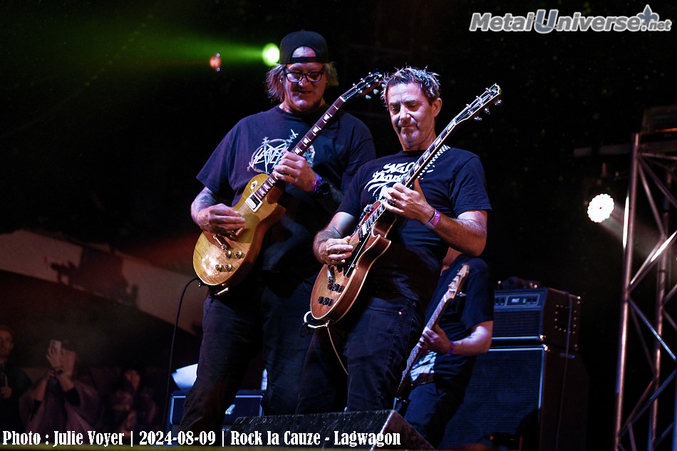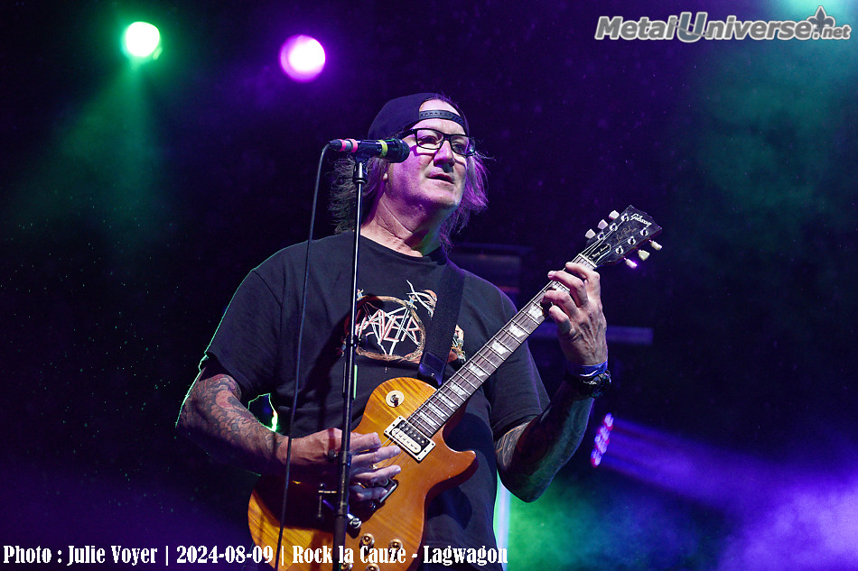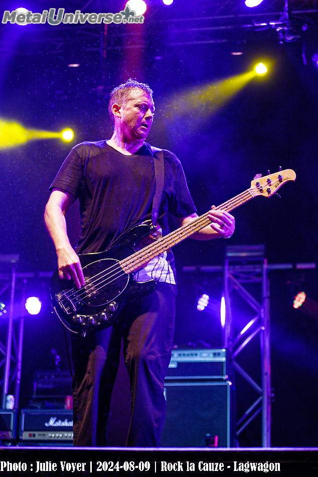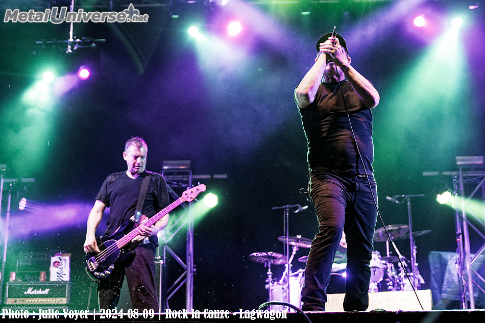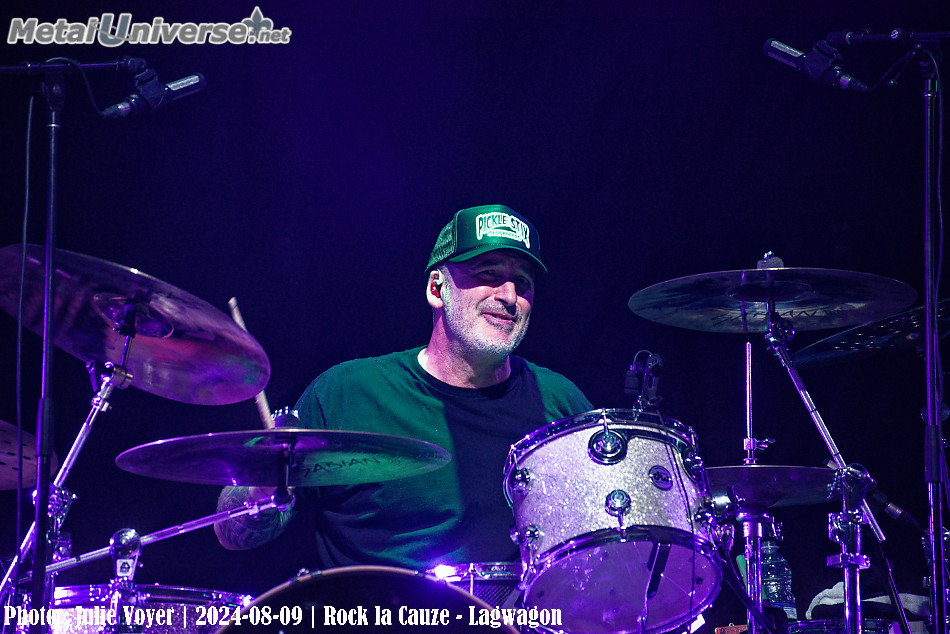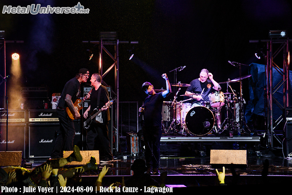 Ajouté à la toute dernière minute à la programmation de Rock la Cauze en l’absence de PUP et Sum 41, Lagwagon se présente sur scène, attendu de pied ferme par les fans qui savent majoritairement à quoi s’en tenir ; le groupe est souvent dans les festivals au Québec alors plusieurs ont déjà été témoins par le passé de leur belle énergie sur scène… et cette fois-ci ne fait pas exception ! C’est vraiment à ce moment de la soirée qu’on réalise la chance qu’on a d’être sur place ; la foule est bigarrée d’imperméables et de ponchos colorés, les plus audacieux utilisent la pente à l’arrière pour glisser dans la boue, et la pluie diminue substantiellement. La très, très large majorité des pièces jouées par les Californiens sont tirées des albums classiques du punk rock Hoss et Thrashed, laissant très peu de place au restant du répertoire du groupe. Un cover de Brown-Eyed Girl est aussi proposé à la foule. En fin de spectacle, pour une raison obscure, l’écran géant cesse de fonctionner, possiblement en raison de la pluie ; cela ne freinera pas les ardeurs des fans sur place, qui continuent à s’amuser comme si de rien n’était !
