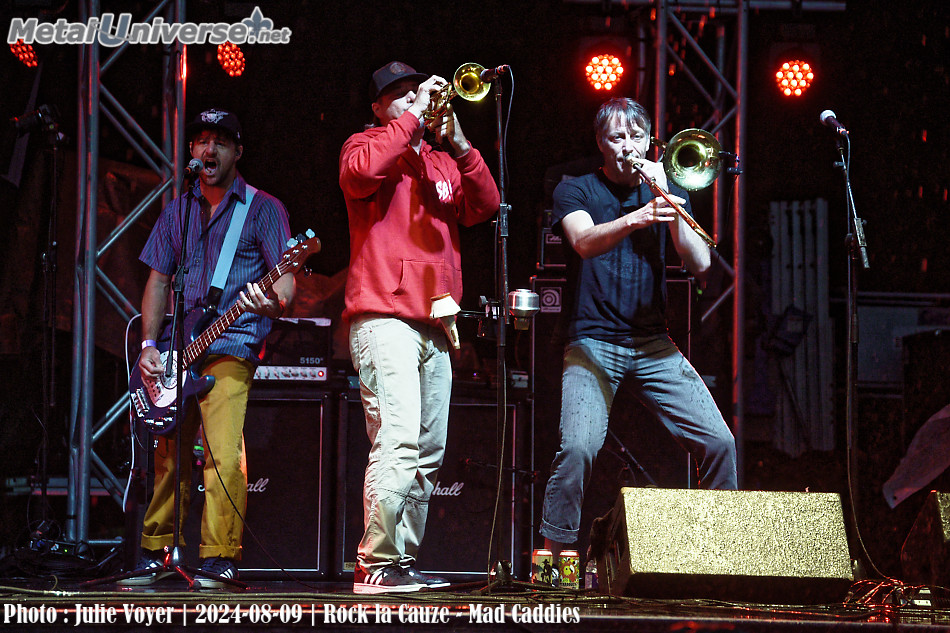 Mad Caddies suit ensuite, avec un ska encore une fois festif, quoique parfois inégal. Les cuivres prennent toute la place et on perd parfois les autres instruments, dans des dérives qui vont dans tous les sens. Malgré tout, tout au long de la prestation de Mad Caddies, les gens dansent, l’ambiance est bonne, très bonne même ; pour se déplacer malgré 100 mm de pluie annoncés, il faut bien qu’on puisse se laisser aller, après tout ! Seule ombre au tableau, selon moi : une pièce (je n’en saisis pas le nom) en milieu de parcours est interminable, et elle tue un peu le rythme de la prestation de par son air peu entraînant… On pardonnera tout de même cet écart puisque le party est dans la place et que les gens font fi des détails, tant qu’on bouge ! Mention d’honneur en terminant au cover de She, de Green Day, qui était original et bien repris.