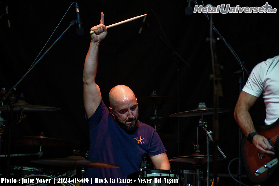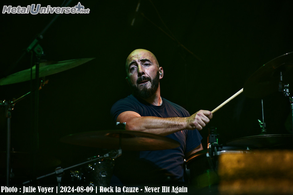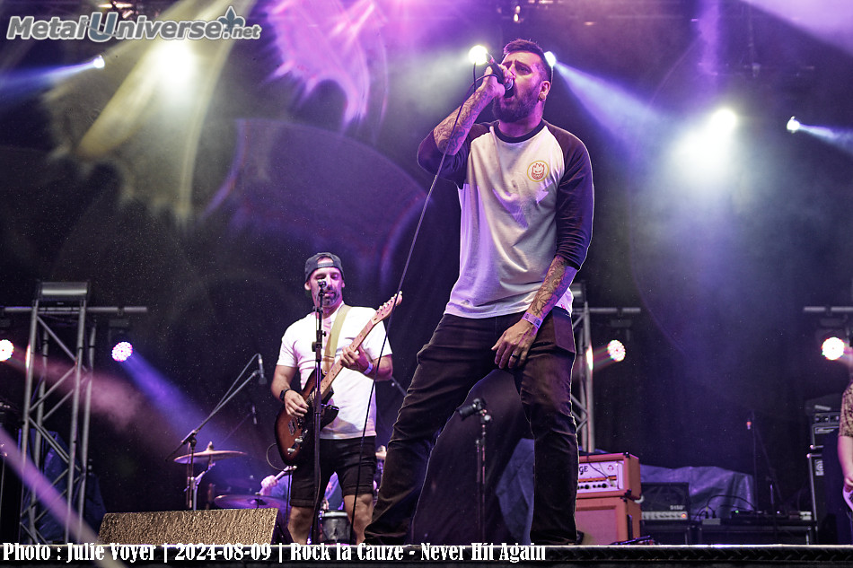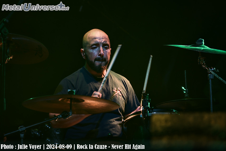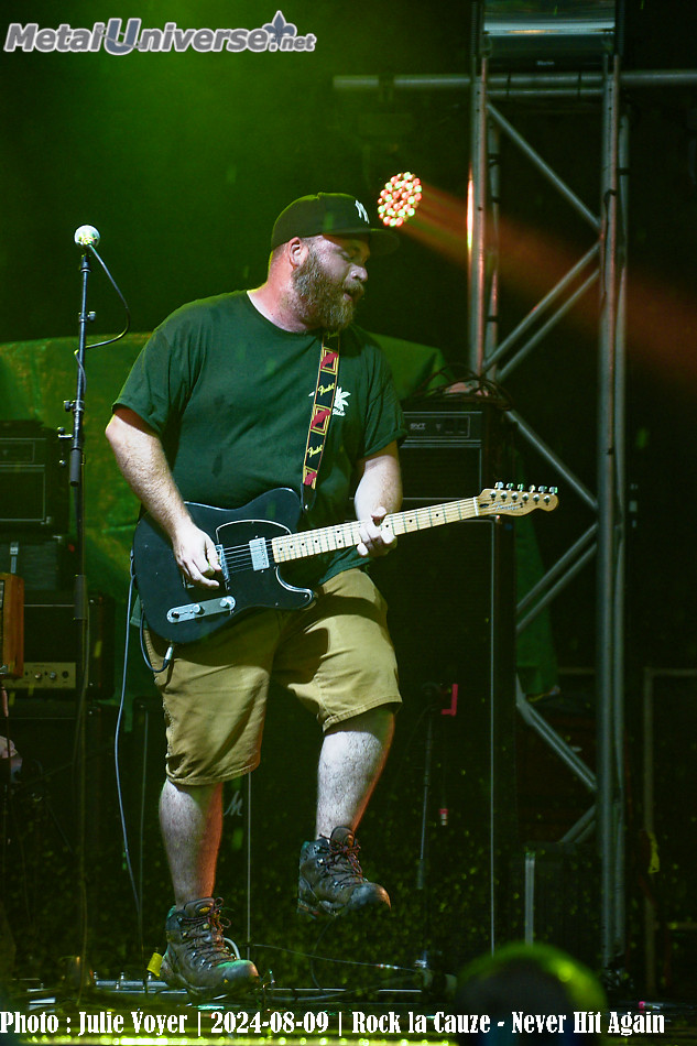 Partir de Québec est un E-N-F-E-R, le trajet prévu prenant le double du temps habituel, si bien que je manque le premier groupe de la soirée. Ainsi, Major Lee passe sous mon radar, de même qu’une partie de Never Hit Again. (NDLR: Major Lee a lancé son nouvel album « C’tu du Rock ou C’pas du Rock » le 7 juin dernier.) Pour ce que j’en saisis, cependant, ces derniers offrent une performance festive, bien nécessaire pour animer les amateurs qui nécessitent un bon réchauffement compte tenu de la température. La formation offrira d’ailleurs sa version bien à elle de Bohemian Rhapsody, et un petit « snippet » du classique Barbie’s Resto Bar Grill. La foule embarque, le rock est bon ; la pluie est bien loin d’arrêter les fans à Victo et, sans surprise, l’ambiance est électrique !