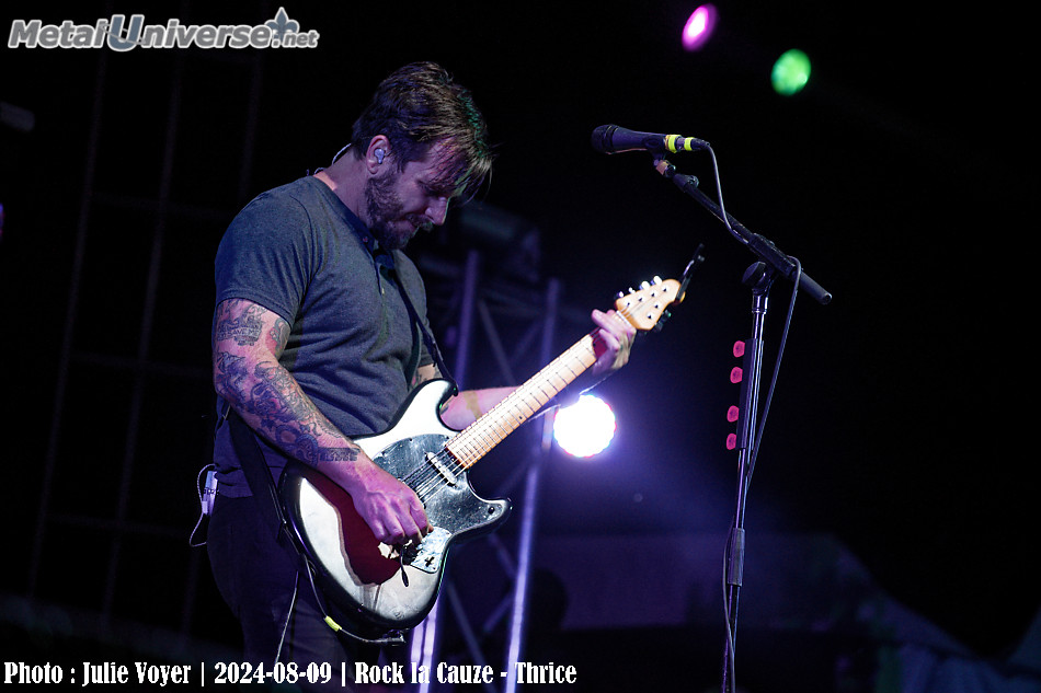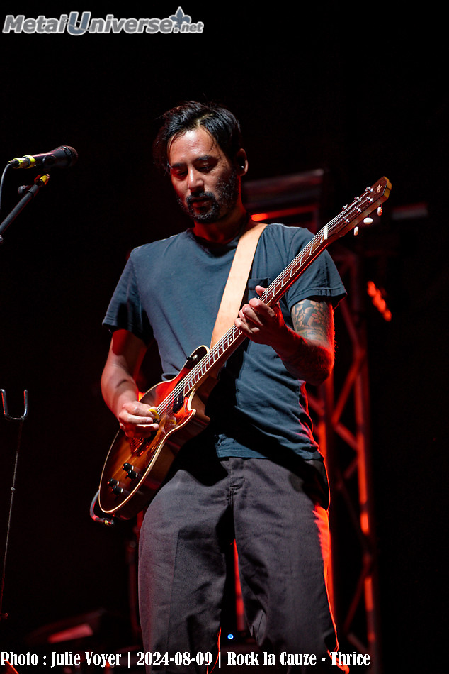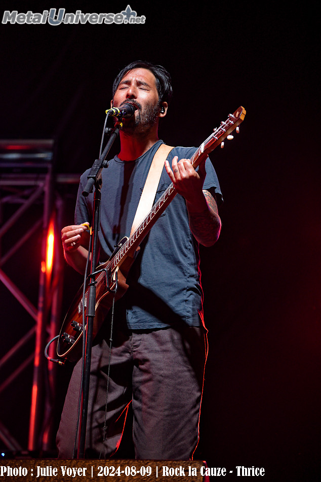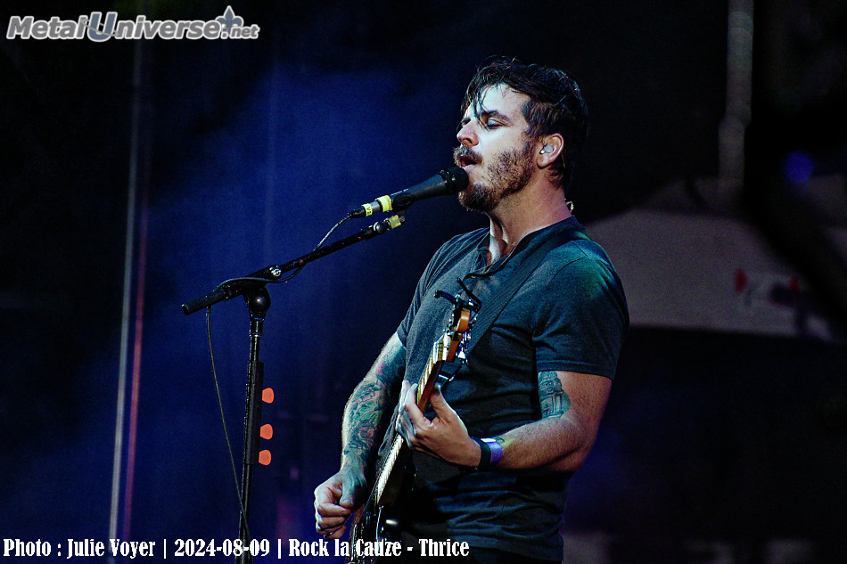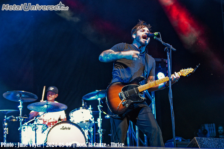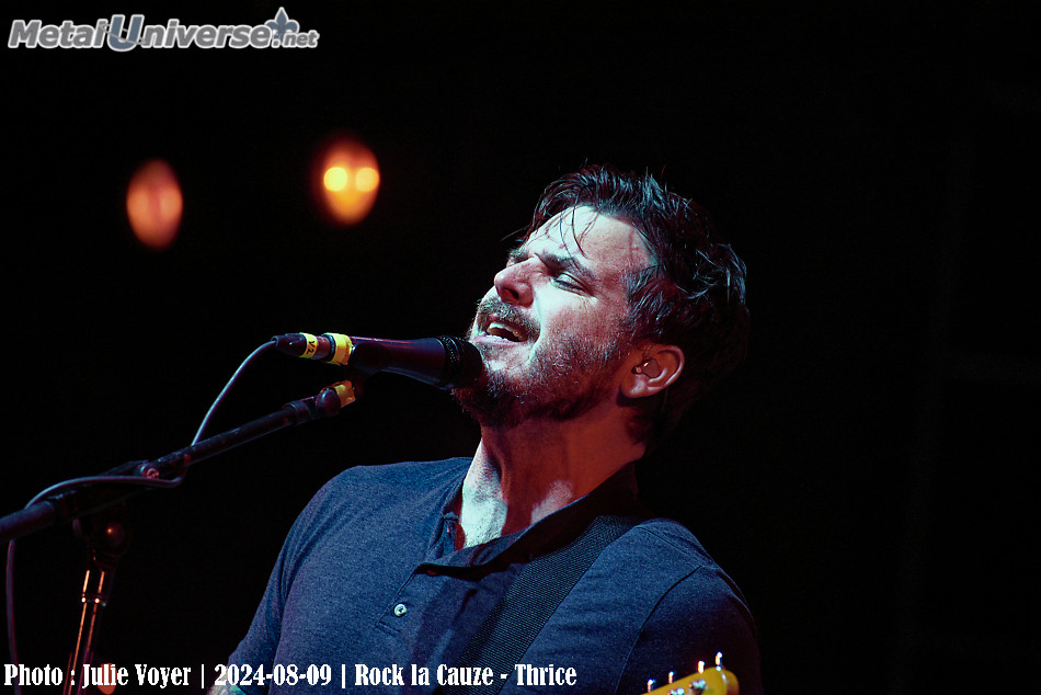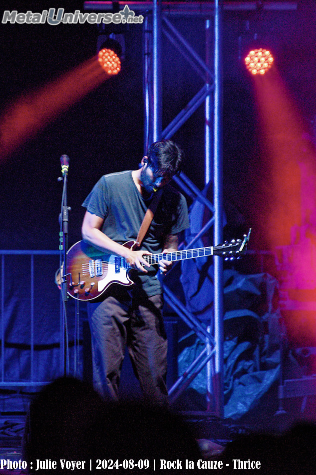 Tout comme Lagwagon, Thrice a accepté à pied levé de remplacer Sum 41 à moins de 10 jours d’avis… quelle classe, sincèrement, et c’est tout à l’honneur des deux groupes. Certains amateurs ont eu l’occasion de voir Thrice au Festival au Lac en juin dernier, alors qu’ils étaient l’une des têtes d’affiche, et on me souffle à l’oreille que leur performance a été sublime. Tel qu’annoncé, le groupe présente de nombreuses pièces (6) de leur plus grand classique, The Artist in the Ambulance, ce qui ne manque pas de plaire aux amateurs. Seul talon d’Achille de la formation : on note peu d’interactions avec la foule durant leur prestation, ce qui est bien dommage puisque le reste est intense et bien exécuté malgré le fait que l’intensité de la foule ait diminué un brin. Il faut dire que Thrice ne présente pas un rock festif mais davantage un rock émotif, qui demande parfois même une certaine concentration pour en saisir le message et l’essence. Il n’en demeure pas moins que leur prestation est pesante, efficace, ce qui ne manque pas de plaire à tous ceux qui sont encore sur place. En dehors d’un petit problème technique en milieu de parcours avec la basse durant Summer Set Fire to the Rain, la performance du groupe est très solide et restera gravée dans la mémoire collective des fans détrempés sur le site.