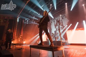 C’est autour de 21 h que le spectacle de Bon Enfant commence. Dès les premières notes, on sent le public en feu! La moyenne d’âge était pas mal jeune, je dirais dans la vingtaine, et pour une fois, je me sentais vieux lors d’un spectacle! En avant de la scène, cela ressemblait à une marée humaine qui ondulait suivant les rythmes des mélodies. J’étais tout en haut, aux balcons, et c’était très agréable à voir. Cela m’a donné foi en la jeunesse, car peu de spectateurs utilisaient leurs cellulaires, ce qui est plutôt rare de nos jours. Les cinq musiciens étaient en super forme et il y avait une vraie complicité sincère entre les membres sur scène. Ce n’est pas moins de dix-huit morceaux qui ont été joués ce soir, avec deux morceaux de leur premier album éponyme, cinq de leur deuxième disque Diorama et onze du nouvel album. C’est donc 11 sur 12 des pièces de Demande Spéciale qui ont été interprétées. C’est le titre Décollage, qui clôture l’opus, qui ne faisait pas partie de la setlist de la soirée, contrairement au concert au Club Soda du 24 octobre dernier.