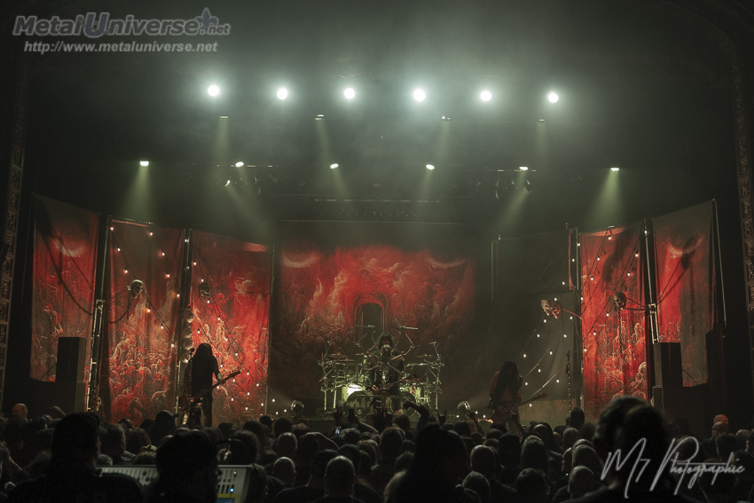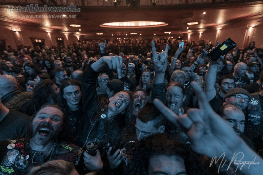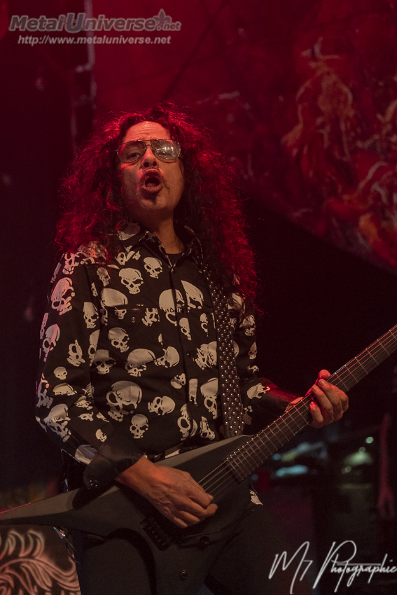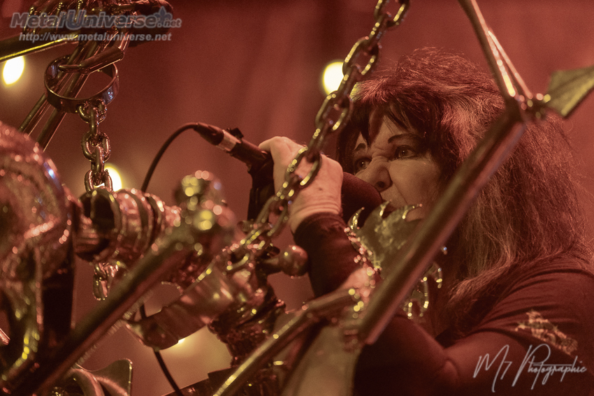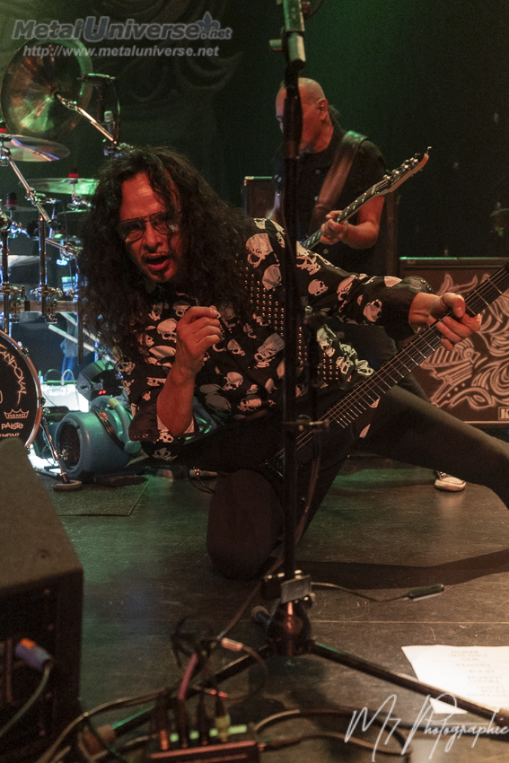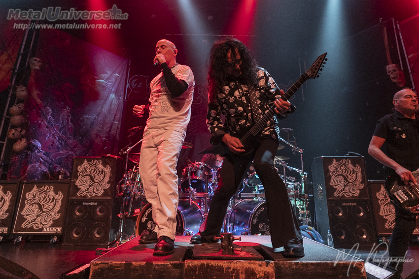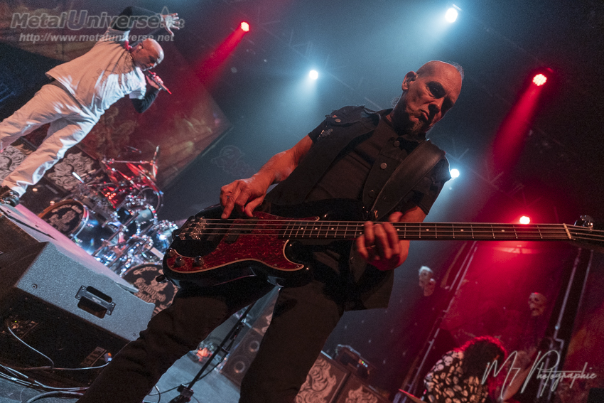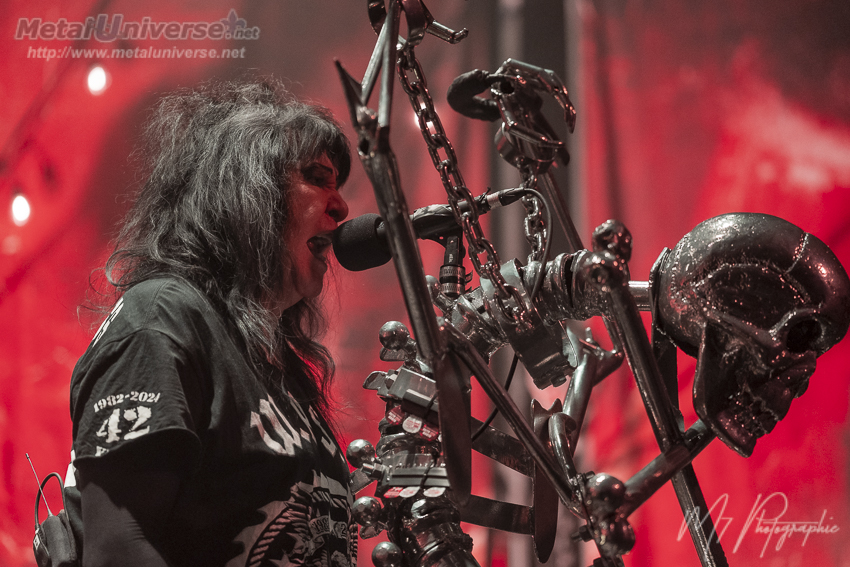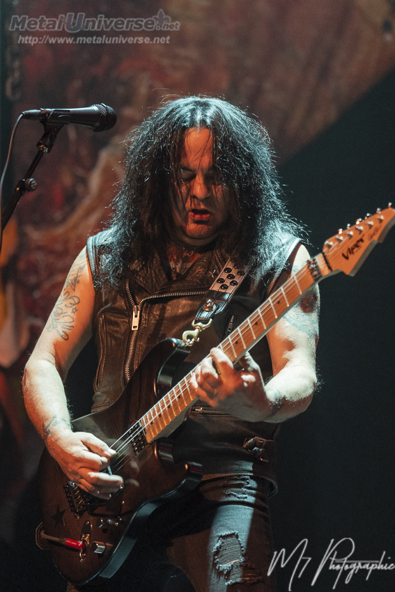 Ainsi, le premier album défile avec certains moments plus forts comme Hellion avec son superbe refrain et évidemment Tormentor qui possède un côté métal plus farouche avec un refrain qui déchire. Juste pour celle-là, ça valait la peine d’être présent. Le lead guitariste Doug Blair est en forme et nous réserve quelques solos prolongés qui contiennent beaucoup de feelings. Il a une belle capacité d’expression sur son instrument à six cordes. Le stage est bien réussi avec une atmosphère rougeâtre et malsaine, des têtes de mort plantées sur des pieux de chaque côté. Il y a aussi un écran géant derrière qui fait jouer durant certaines chansons les vidéoclips de l’époque ou des images du groupe qui datent, ce qui colle bien à l’ambiance sur scène constamment renflouée de boucane.