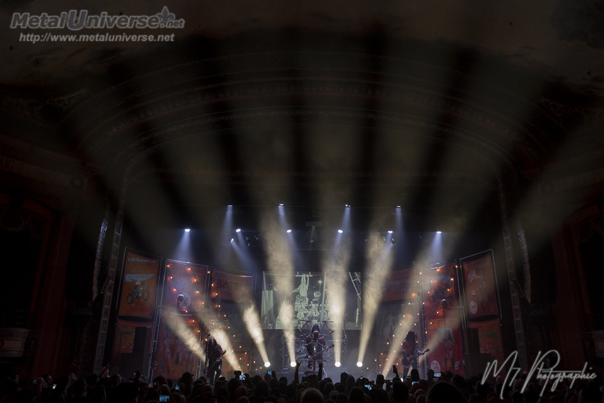 Armored Saint embarque donc sur scène à l’heure avec le décor de WASP qui prend tout l’espace et je dois admettre que c’est cool. La bannière à l’effigie d’Armored Saint est bien visible en arrière et c’est un départ pour eux. John Bush est définitivement en voix et tout le band semble bien motivé. Ils changent des chansons à chaque soir, donc c’est intéressant pour ceux qui les verront plus d’une fois dans cette tournée. Je dirais que c’est un début un peu lent et les gens embarquent moyennement jusqu’à temps qu’ils nous servent March of the Saint, là ça lève et on se manifeste surtout sur le parterre. Celle-ci possède un refrain accrocheur facile à suivre même pour ceux qui n’avaient jamais entendu la pièce, c’est efficace. Côté sonore, tout baigne, il manque légèrement une des deux guitares dans le mix, mais sans véritable conséquence, car c’est perceptible.