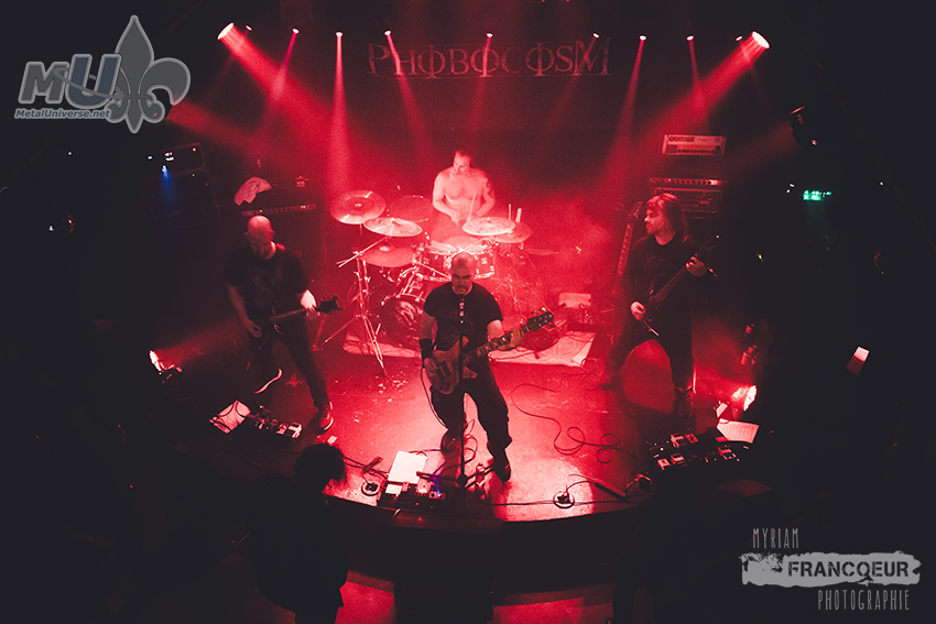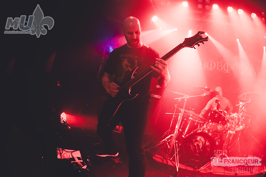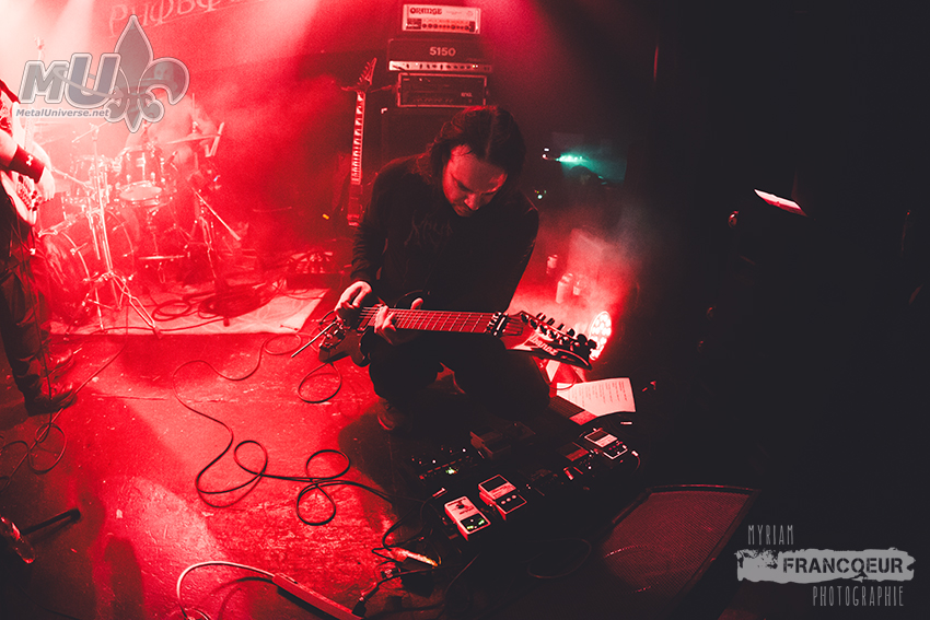 Phobocosm, whose death music draws from crushing doom, delivers a music heavier than neutronium (yes, I’ll allow myself a physics reference). Phobocosm conveys its apocalyptic atmosphere through riffs that would suffocate metal neophytes. The QG, bathed in darkness with a hint of a fiery glow, let themselves be carried away in a deep trance for 8 extremely powerful tracks.