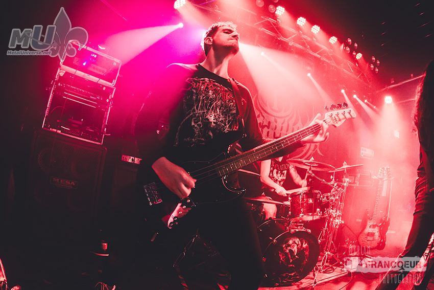 Intonate kicked off the evening after covering the 638 km between Montreal and the La Capitale nationale du cuivre (the “National Copper Capital”). The band delivers a groovy tech death with a hint of thrash and black. The Rouyn-Noranda crowd really appreciated their performance.