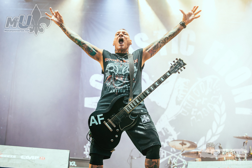 Chaque année, le SBOA invite un des piliers de la scène hardcore est-américaine. En 2025, c’est Agnostic Front que le festival nous a présenté. Donc, aussitôt le plein refait, c’est le temps d’aller voir Agnostic Front : la formation donne des spectacles-choc et est réputée pour sa générosité tout comme son mordant. Et si Gojira, la seconde tête d’affiche, commençait à jouer en même temps que les piliers du hardcore punk de New York, Agnostic Front rassemble toute une foule.