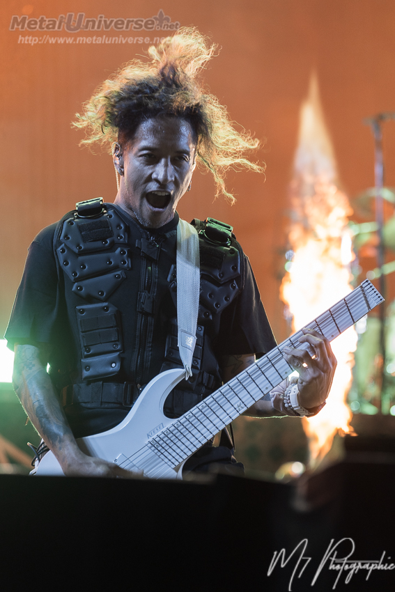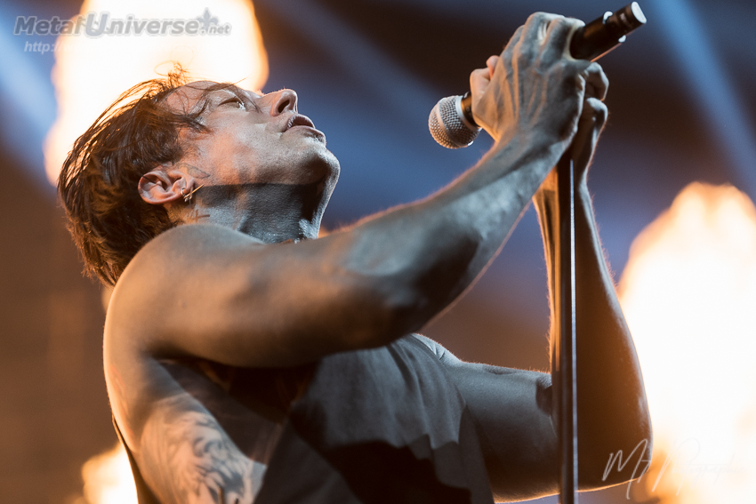 But what the crowd really came for was Ronnie Radke. I was even surprised to hear his name shouted all over the venue, more than the band’s. A bit of a shame, since Falling In Reverse is above all a collective work, an impressive live machine. But let’s be honest: Radke is larger than life.