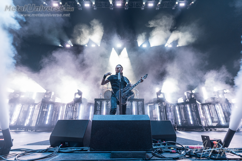 At 7:50 p.m., Gojira hit the stage, in front of an impressive screen that kept flashing futuristic and technological images and videos throughout their set. Used to being the underdog, the French formation opened with Only Pain, flames included on stage. Those unfamiliar with Gojira were blown away; live, they’re insanely powerful, and this night was no exception. On a technical level, the French are at the top of their game (let’s be honest, they always have been…), and the performance of each member can only be applauded with respect.
