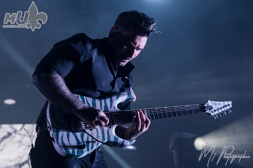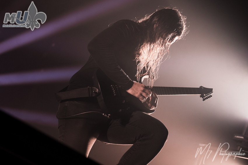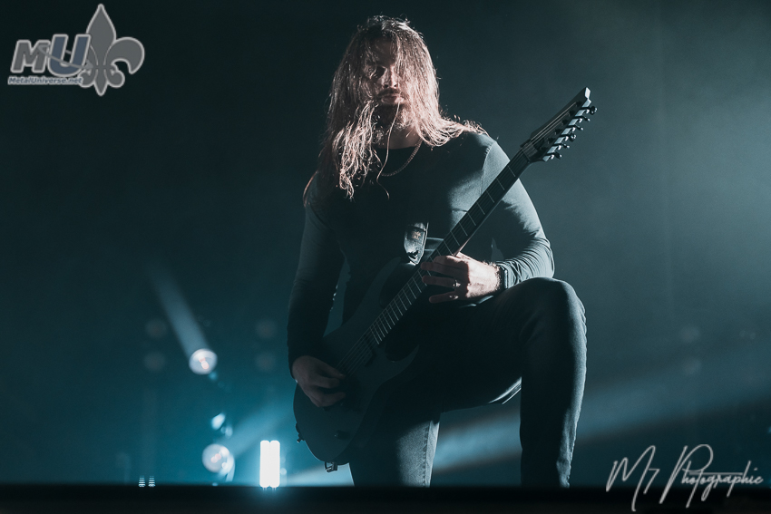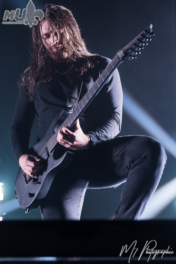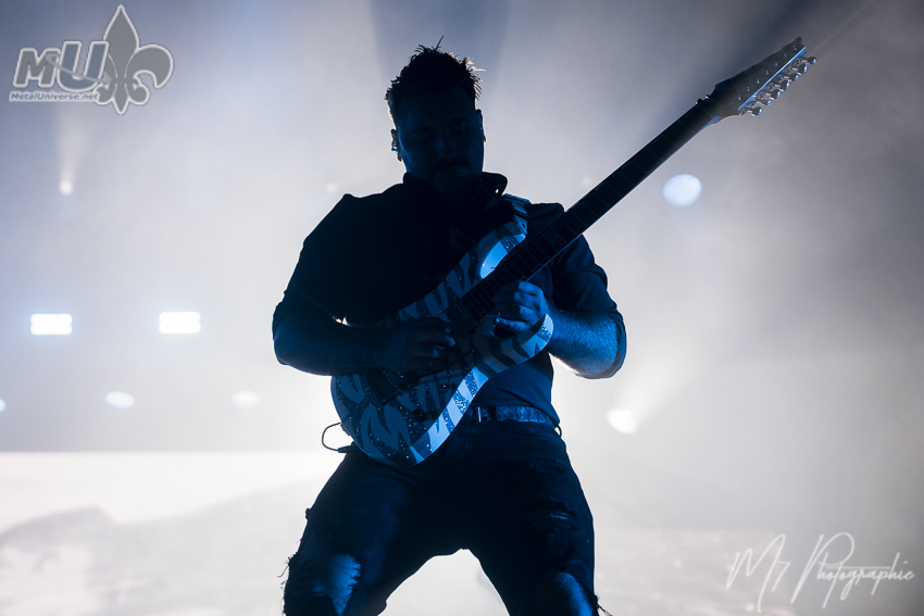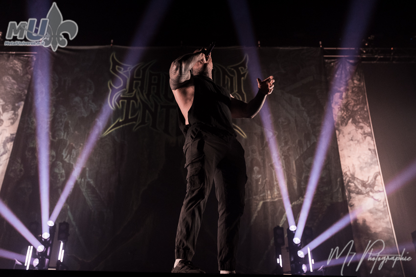 C’est Shadow of Intent qui a ouvert le bal, et quel départ! Le chanteur Adam Mercer, remplaçant Ben Duerr qui a quitté la tournée pour être présent à la naissance de son enfant, impressionne par sa maîtrise : il enchaîne les screams et growls comme s’il respirait la brutalité. À ses côtés, la guitare de Chris Wiseman fend l’air avec une précision chirurgicale, sans jamais laisser le public reprendre son souffle.