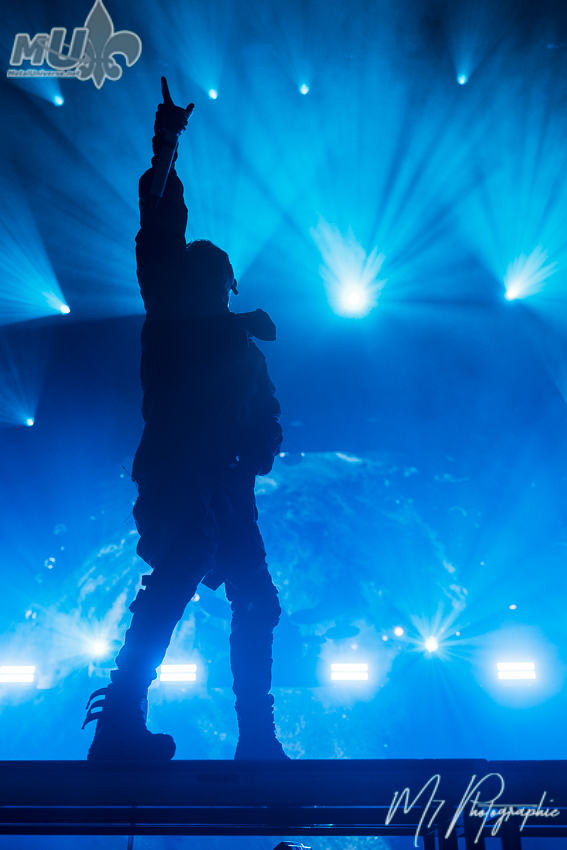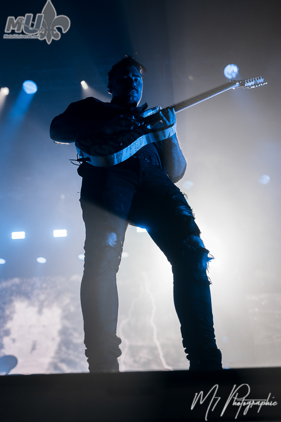 La dimension visuelle du spectacle était à la hauteur de cette performance vocale : une cinématique parfaitement synchronisée avec la musique, accentuant la noirceur et la beauté des thèmes abordés. Austin Archey, perché au-dessus d’un écran géant, semblait littéralement flotter au-dessus de la scène — un effet visuel saisissant qui donnait au groupe une allure quasi mythologique.
