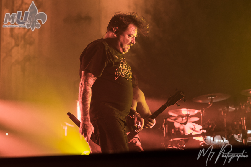 Le mosh pit s’est formé en quelques secondes à peine, et la foule, déjà conquise, a plongé tête première dans l’intensité du moment. Les jeux de lumière, saccadés, parfois presque stroboscopiques, amplifiaient cette tension dramatique qui rend le death si théâtral. Duerr, bras ouverts, dominait la scène tel un orateur apocalyptique livrant un discours capable de changer le monde.