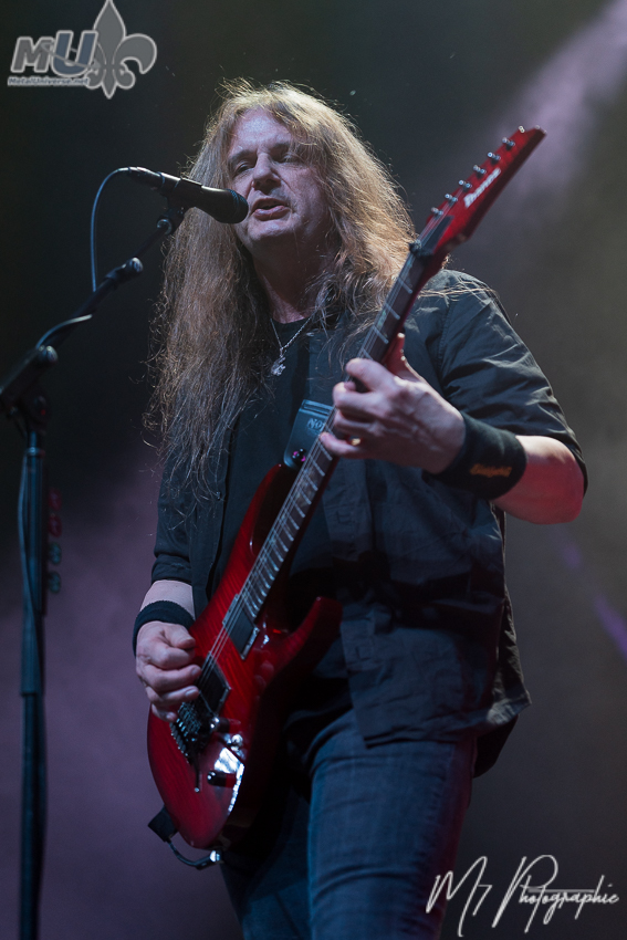 Entre les chansons, Hansi Kürsch a été très actif en termes d’interaction avec les fans, où il a répété à de nombreuses reprises à quel point Montréal est incroyable. Il a aussi souligné l’importance de l’album Somewhere Far Beyond dans leur carrière, qui les a vraiment propulsé vers les sommets. Il a évoqué à quel point cette période a été difficile pour le groupe, qui n’avait pas la popularité ni un amour du public aussi fort avant ce dernier. Un écran géant aux couleurs de la pochette, quelques effets de lumières efficaces sans être abusifs. D’ailleurs, c’est à prendre en note pour les autres groupes, vous n’avez pas besoin d’aveugler le monde avec des stroboscopes pour « faire un show ». Ce fut une leçon métallique de la part des vétérans.