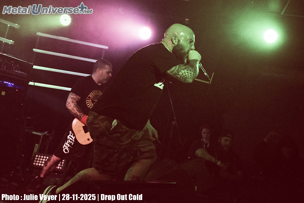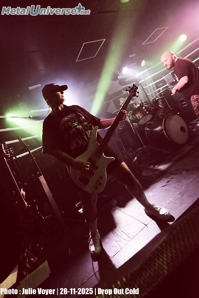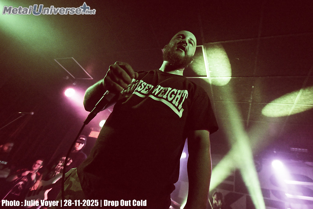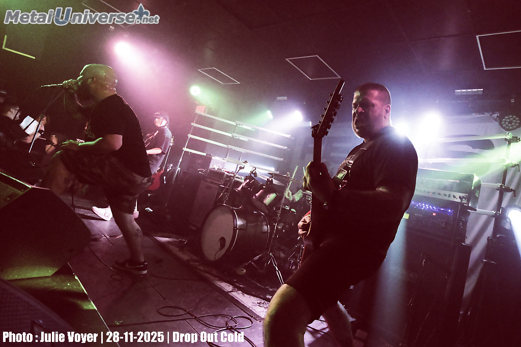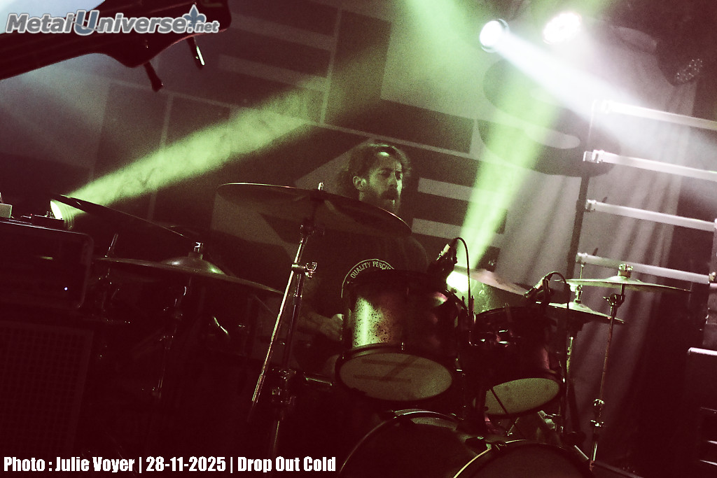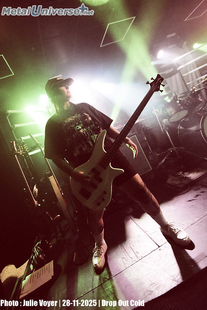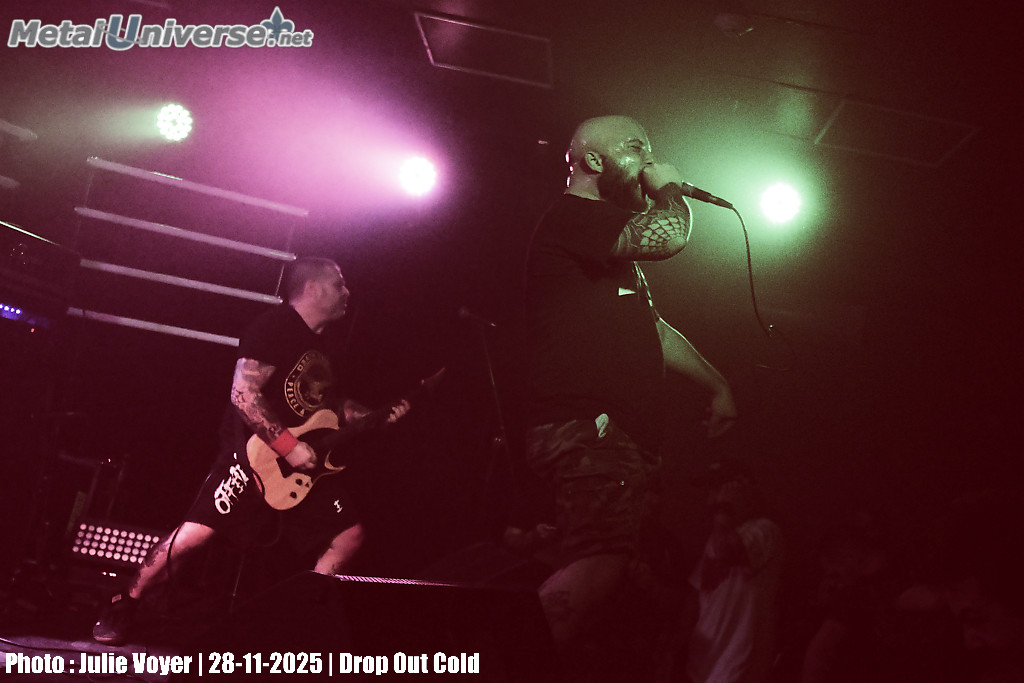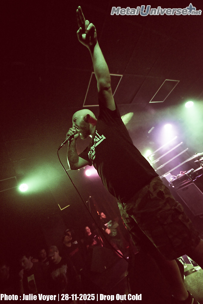 La première soirée commence avec un groupe surprise, annoncé le soir d’avant. C’est Drop Out Cold qui ouvre avec un 15 minutes intense et rythmé, qui fait bonne impression assez tôt – ce n’est que leur deuxième spectacle depuis la fondation du groupe. La salle se remplit lentement, mais ceux qui y sont déjà donnent ce qui faut; on a déjà droit aux premiers stage dives. Pour clore en beauté, Drop Out Cold nous quitte avec une chanson bilingue.