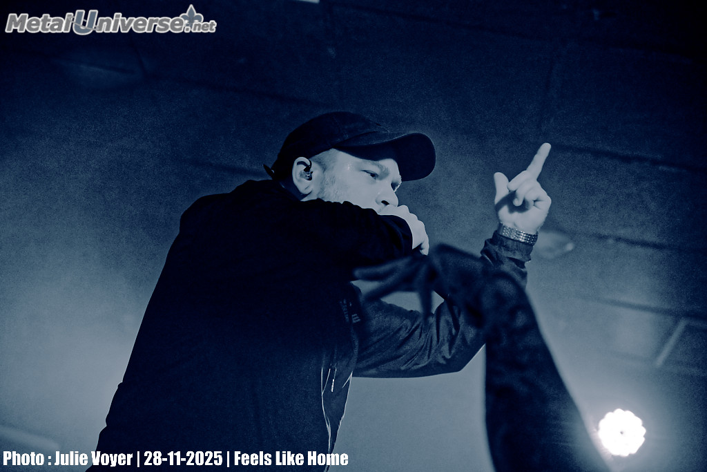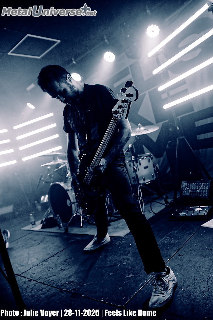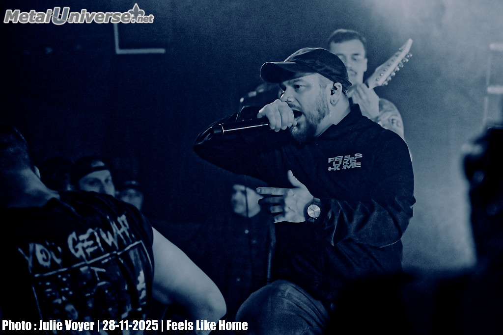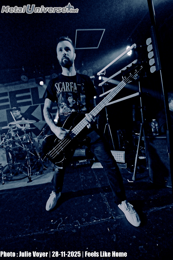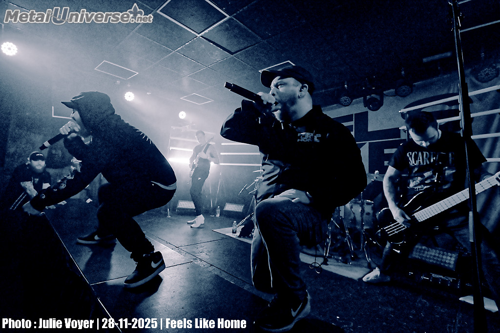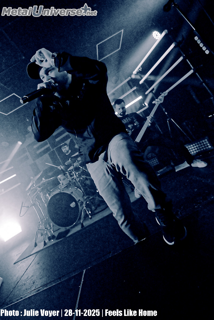 Enfin, les vedettes de la soirée, Feels Like Home, embarquent sur scène avec un décor lumineux digne d’un vidéoclip. C’est là que tous les fans s’avancent pour ne pas être exclus de l’action dès le départ en force avec “Bound For Hell”. On a droit à toute une variété de chansons, allant de classiques d’il y a 10 ans comme “Burning Pages”, “Gamebreaker” et