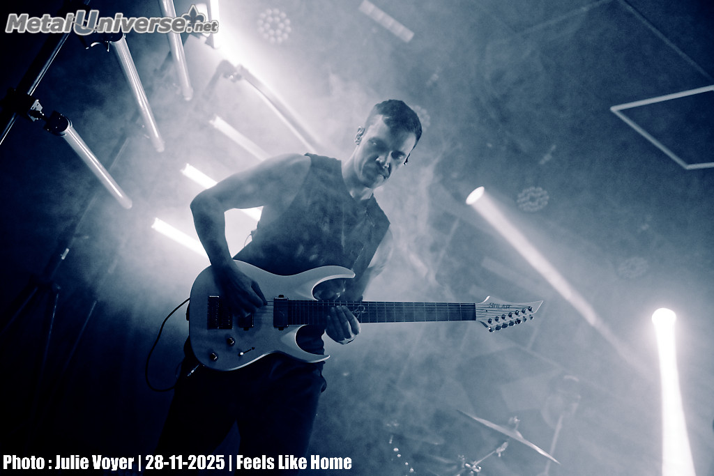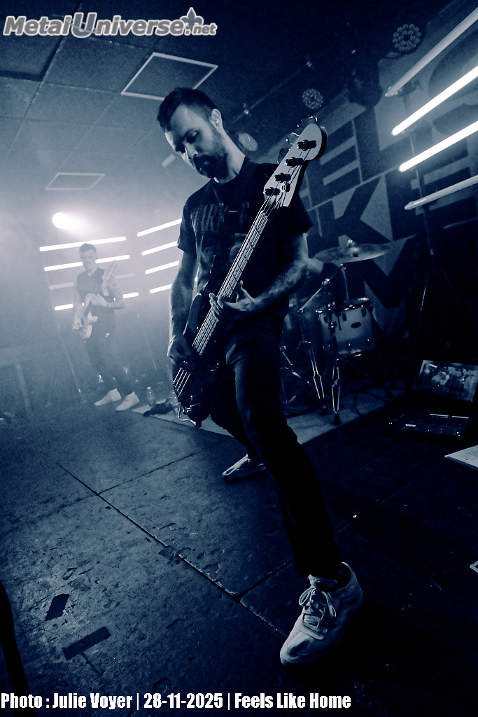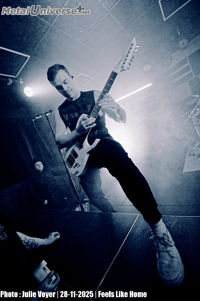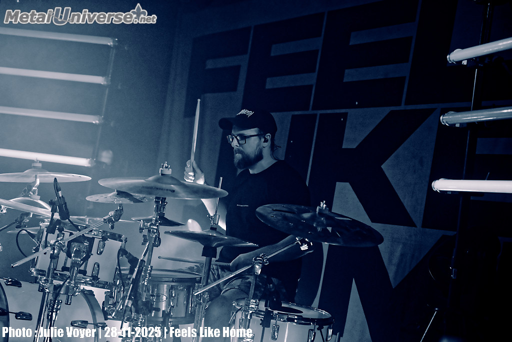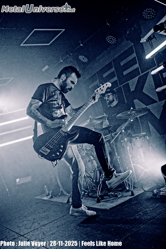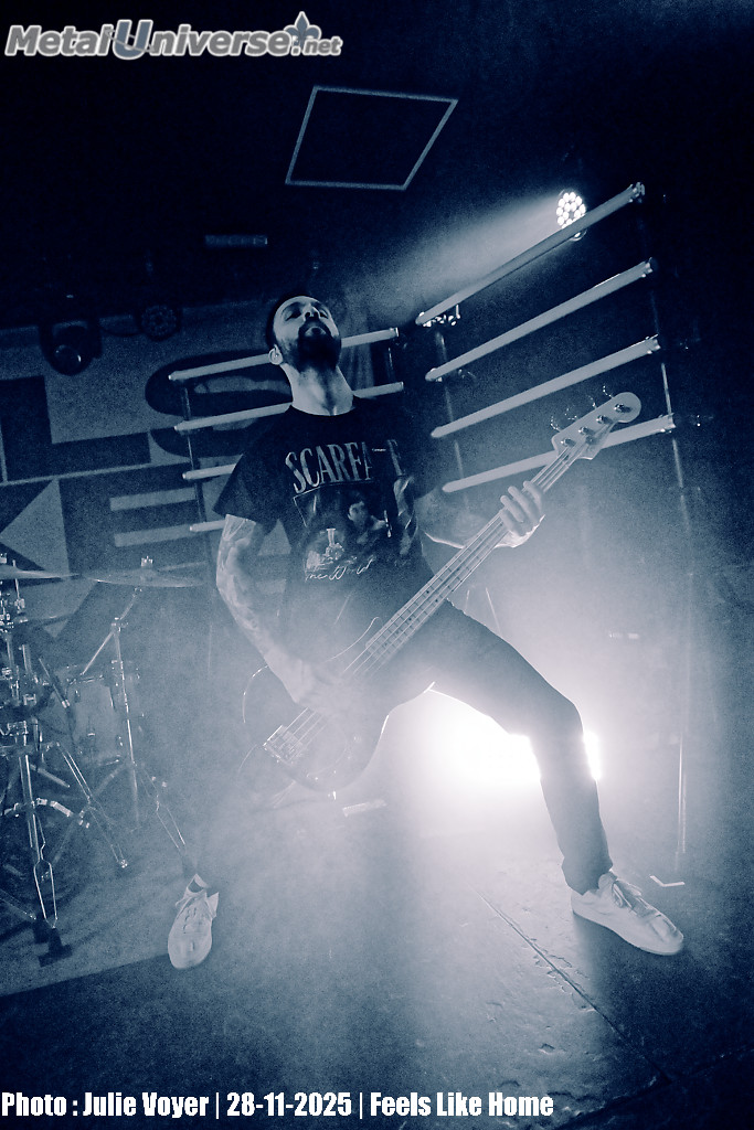 Enfin, les vedettes de la soirée, Feels Like Home, embarquent sur scène avec un décor lumineux digne d’un vidéoclip. C’est là que tous les fans s’avancent pour ne pas être exclus de l’action dès le départ en force avec “Bound For Hell”. On a droit à toute une variété de chansons, allant de classiques d’il y a 10 ans comme “Burning Pages”, “Gamebreaker” et
