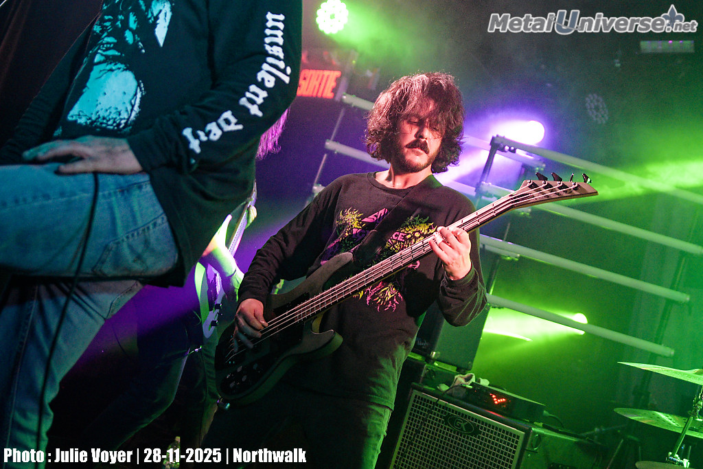 Après une longue pause, Northwalk embarque sur la scène pour une performance classique et prend des moments moins sérieux entre les chansons pour parler à la foule, surtout pour remercier L’Anti et son rôle majeur dans la prospérité de la scène locale. Northwalk nous joue surtout des nouveaux morceaux de leur plus récent EP, A World Undone, datant de quelques semaines, que je vous encourage à vous procurer en passant. À ce moment de la soirée, la salle semble pleine, les “danseurs” sont dégourdis et la scène est glissante, au grand malheur des acrobates…