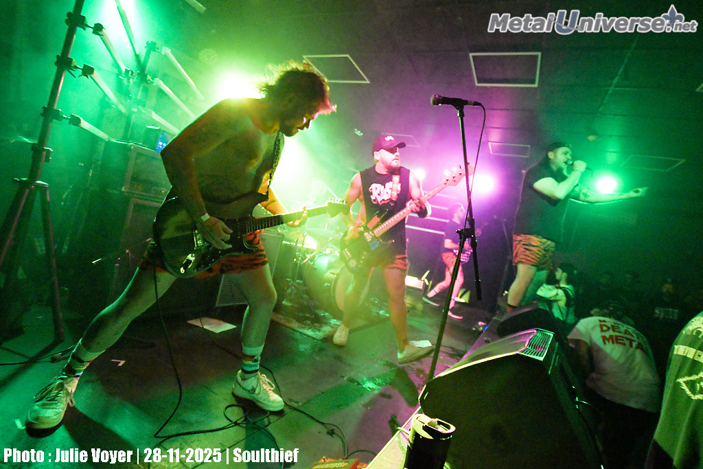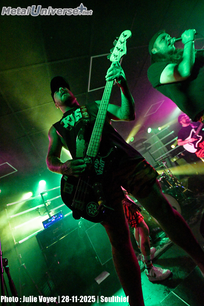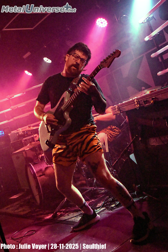 Ensuite c’est Soulthief qui rend difficile de garder de l’énergie pour deux jours de spectacle. Avec leur énergie naturelle, ils animent la foule, font des chants et transforment les danseurs du pit en macaques avec des tasers. Leur style comique, des petites shorts à la Tony the Tiger, détonne avec leur musique beaucoup plus rapide, axée sur la basse avec le côté rap/slam qui est toujours accompagné de la violence exutoire qu’on aime dans ce type de soirée. J’étais personnellement moins fan de Soulthief en format audio seulement, mais leur performance m’a convaincu d’y replonger.