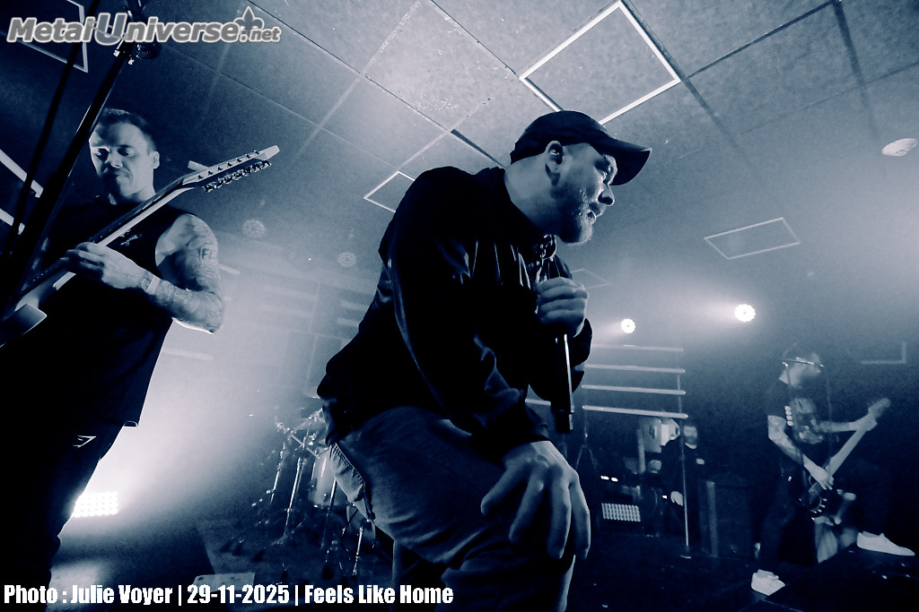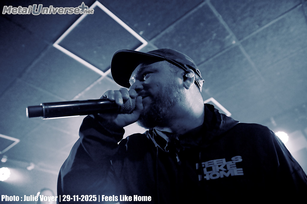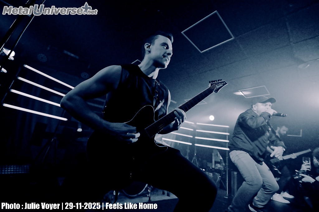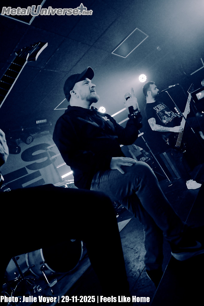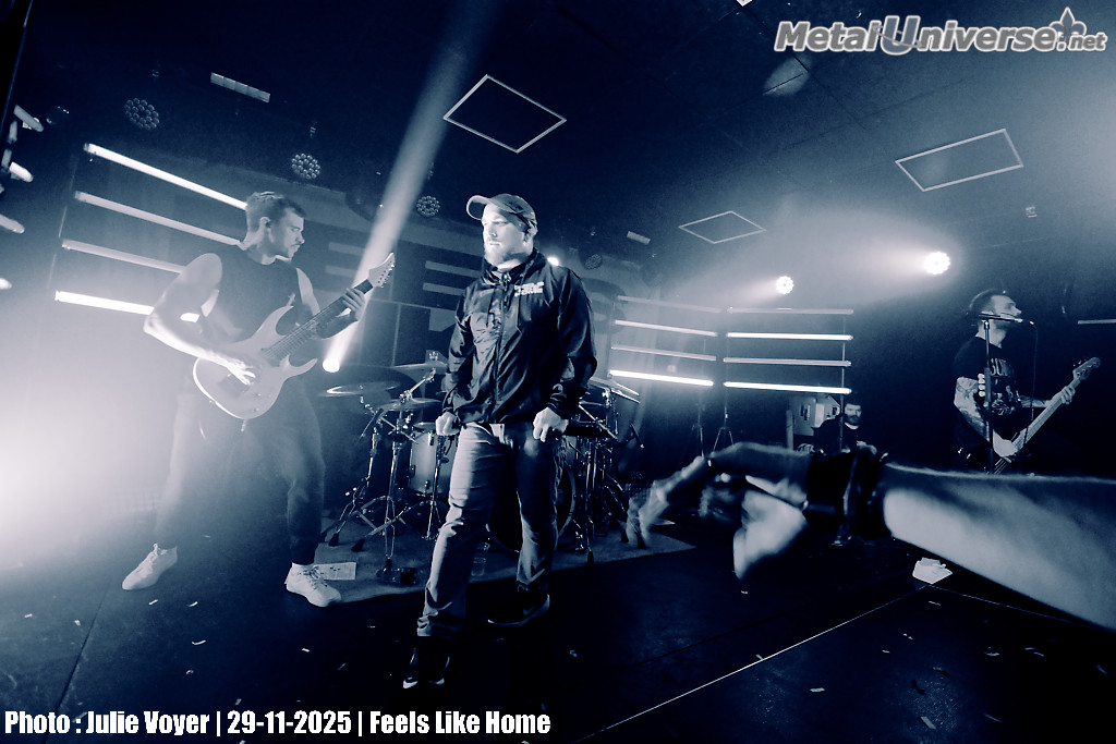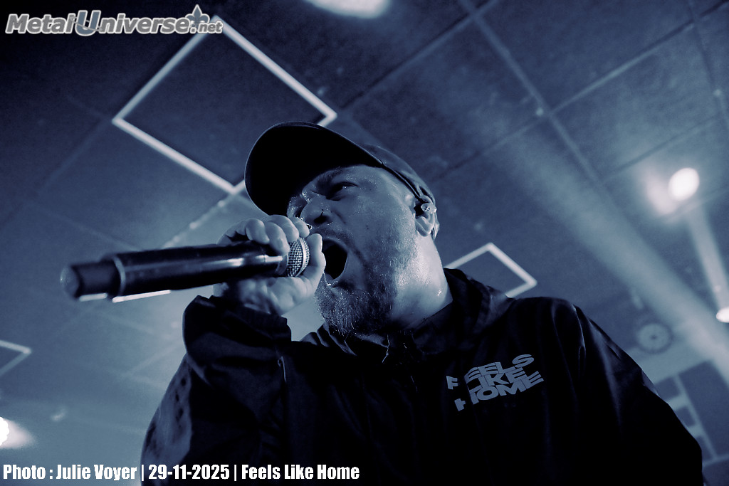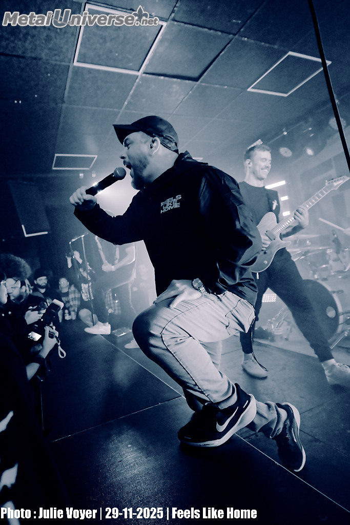 Pour la deuxième fois, Feels Like Home revient occuper leur scène pour rejouer 15 chansons. Le départ se fait encore en force et la foule est prête à donner tout ce qui leur reste. La programmation de cette soirée reprend les mêmes chansons que la veille, mais dans un ordre différent. Je trouve dommage de ne pas avoir entendu le reste d’Integrity. En effet, on a seulement entendu trois pièces sur dix de l’album anniversaire, mais il est toujours plaisant d’entendre “Among Many”, ainsi que les deux autres avec des chanteurs invités différents d’hier. Justement, on a encore droit à plusieurs “features”, dont Victoria de Peer Pressure, permettant aux artistes précédents de revenir le temps de quelques couplets, complétant la fraternité entre headliner, premières parties et public. Le groupe prend le temps de remercier son équipe, qui effectivement nous a assuré un bon son sur deux soirs, mais aussi qui a géré la lumière à la perfection, permettant de rajouter toute une ambiance à des chansons comme “Wildfire” avec des jeux de lumières rythmés et immersifs. Je crois que la foule était plus nombreuse que le premier soir, ou du moins plus participante dans le pit. La fête se termine en beauté avec un gâteau, des confettis, des remerciements et des fist bumps. Cette fois-ci on ne se dit pas à demain, mais plutôt qu’on va se revoir en 2026. La double soirée est une réussite et je crois que tous ceux qui y ont assisté seront au rendez-vous la prochaine fois, mais maintenant c’est l’heure de récupérer – je suis plein de bleus et je marche tout croche depuis.