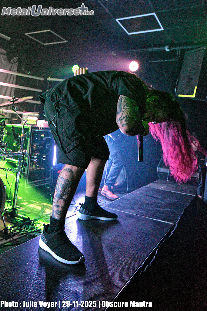 Arrivant avec un léger retard, j’entends la première chanson de Obscure Mantra de dehors, l’ambiance est prometteuse avant même d’entrer. En effet, ce n’était pas un réchauffement, la fête était commencée pour vrai. La foule semble légèrement plus nombreuse que hier. Obscure Mantra nous donne ce qu’ils font de mieux, de l’intensité. Et on la vit tous dans les premiers circle pits de la soirée.
