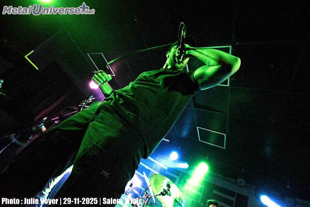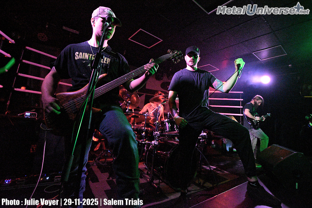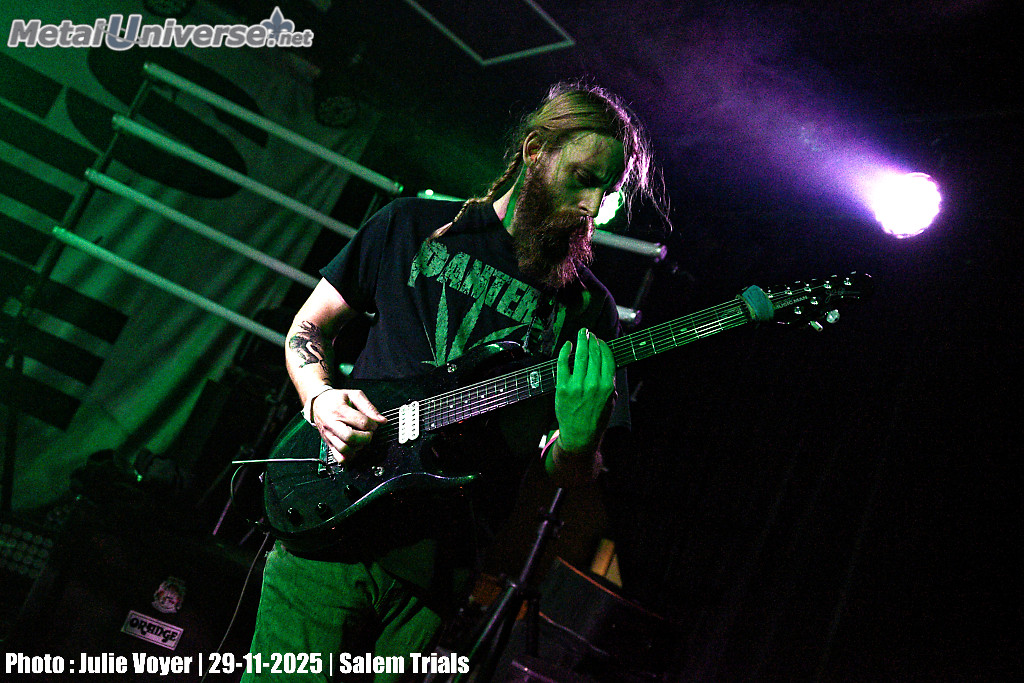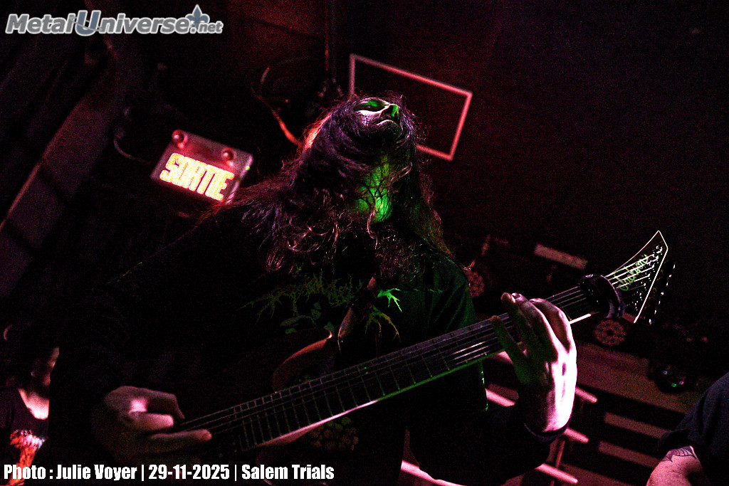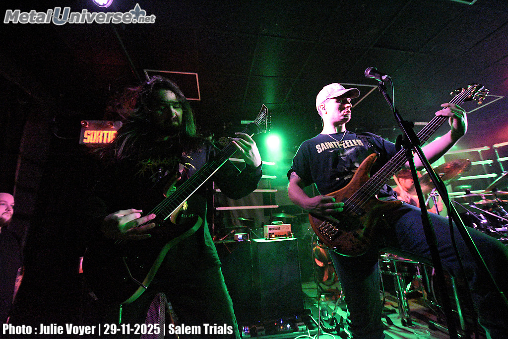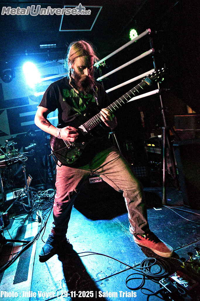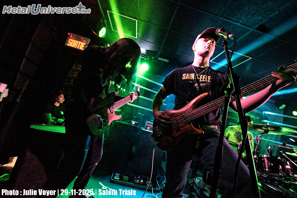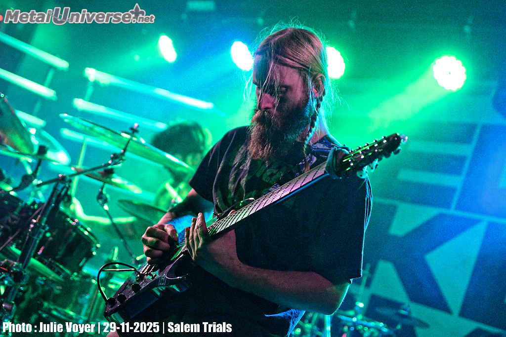 Ensuite, Salem Trials s’empare rapidement de la scène. Pas d’entrée dramatique, pas de finesse. Ils font le soundcheck et commencent directement avec leur son pesant qui fait vibrer la pièce. Je n’avais jamais eu la chance de les voir sur scène et franchement, j’y retournerais n’importe quand. Encore une fois, comme hier, les techniciens de son ont réussi à rendre justice au son de tous les bands, poussant la basse au maximum, sans perdre les autres instruments si importants. J’entends aussi un comique dans la foule dire “En tout cas Salem ça a moshé”’. Salem Trials laisse la musique parler, et c’est dans toute la lourdeur qu’on aime.