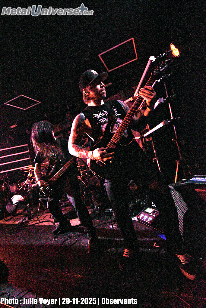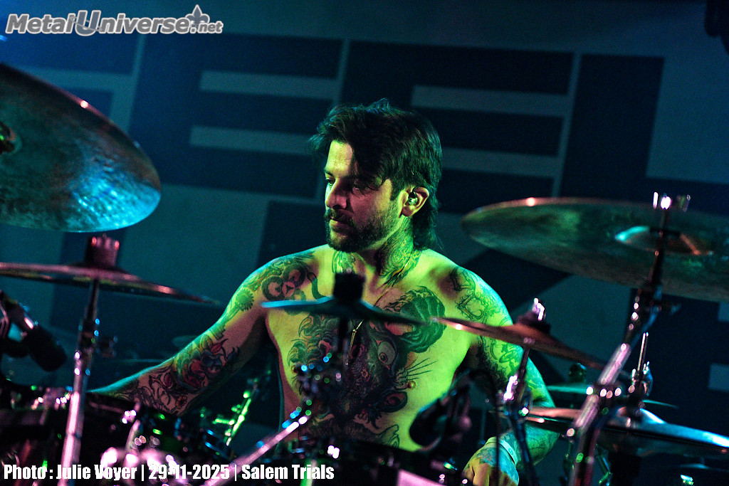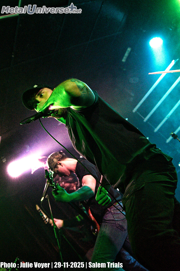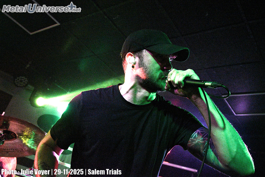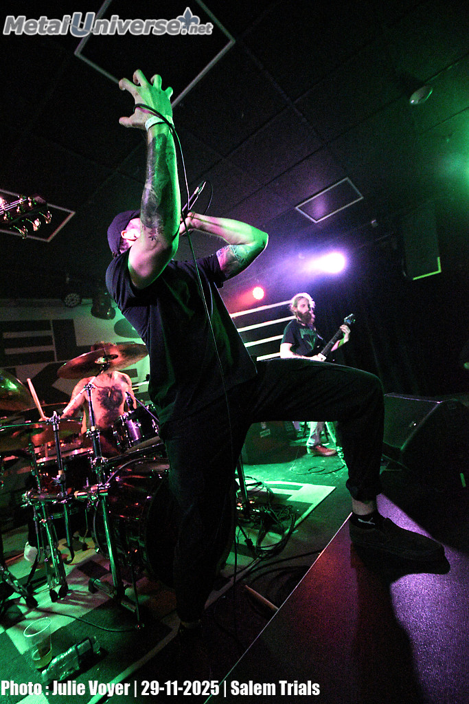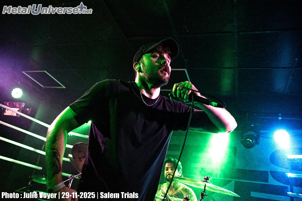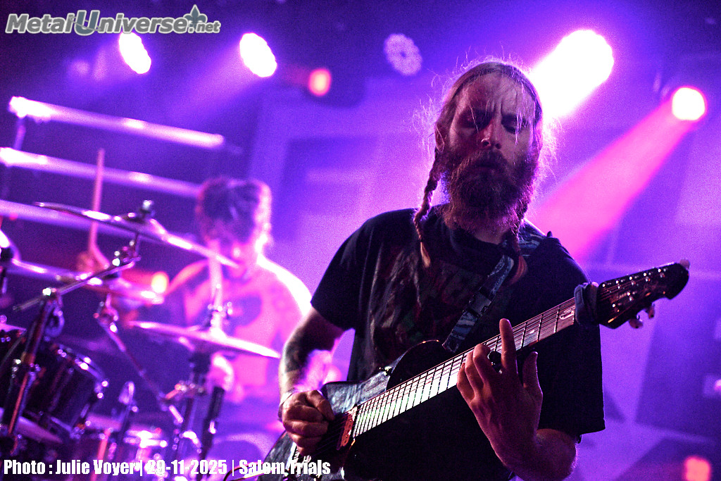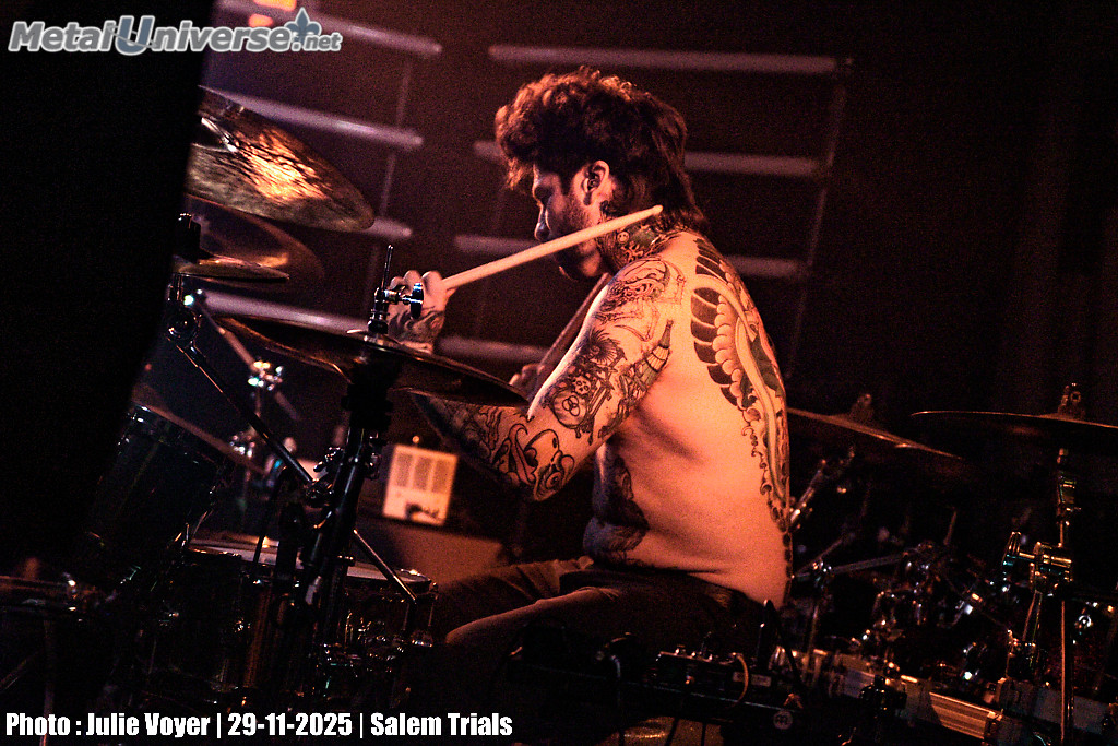 Ensuite, Salem Trials s’empare rapidement de la scène. Pas d’entrée dramatique, pas de finesse. Ils font le soundcheck et commencent directement avec leur son pesant qui fait vibrer la pièce. Je n’avais jamais eu la chance de les voir sur scène et franchement, j’y retournerais n’importe quand. Encore une fois, comme hier, les techniciens de son ont réussi à rendre justice au son de tous les bands, poussant la basse au maximum, sans perdre les autres instruments si importants. J’entends aussi un comique dans la foule dire “En tout cas Salem ça a moshé”’. Salem Trials laisse la musique parler, et c’est dans toute la lourdeur qu’on aime.