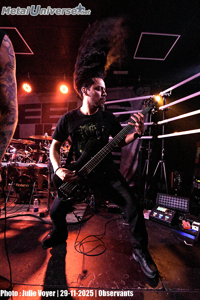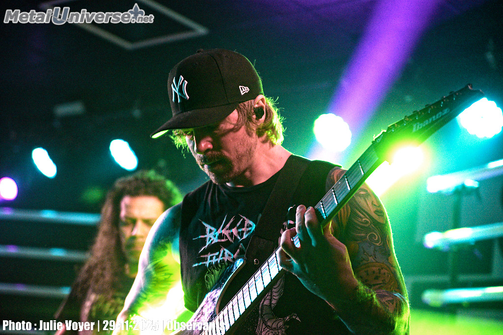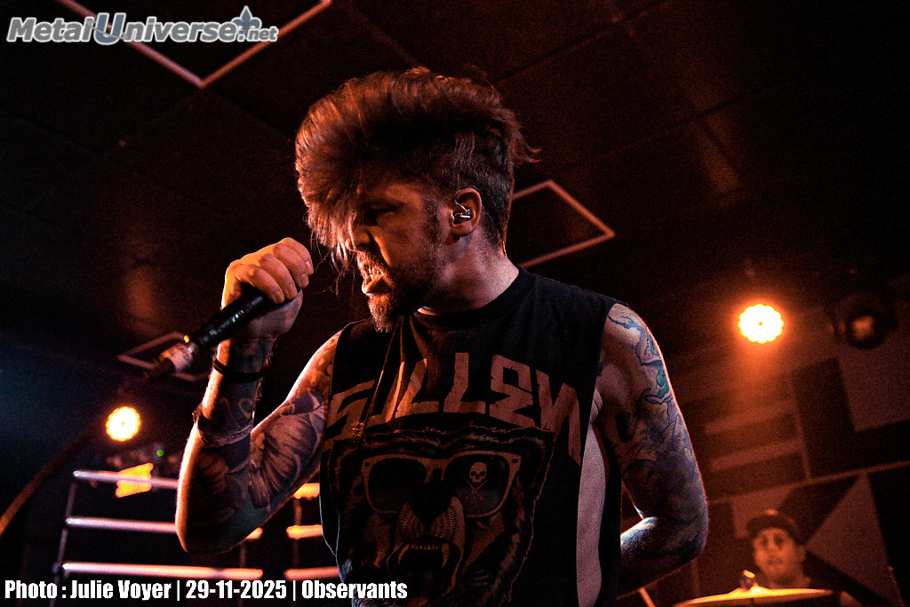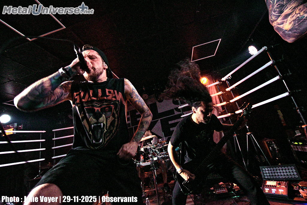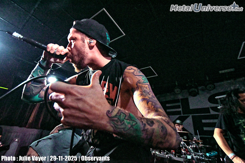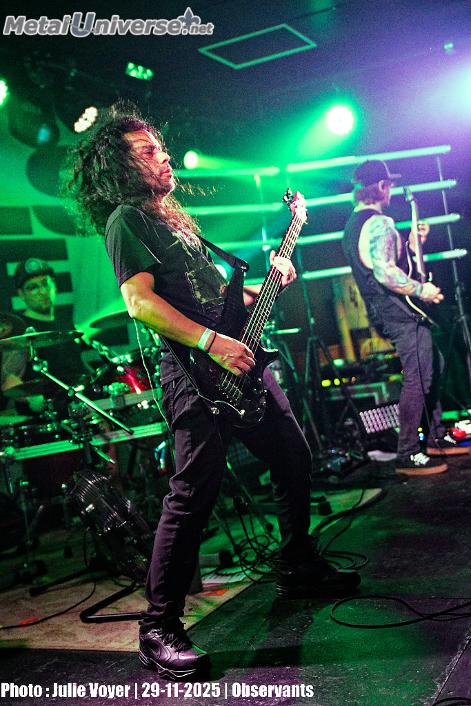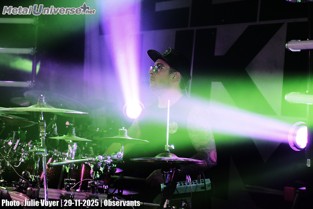 Ensuite c’est la formation nombreuse d’Observants qui embarque sur scène et fait bouger tout le monde avec leur son captivant. La setlist intéressante débute avec “Phoenix”, l’ouverture dramatique de leur dernier EP, et se clôt avec une de mes favorites “Supreme Being”, du premier EP. Leur mélange de symphonie, de mélodie, de lourdeur, de rapidité et d’agression inspirée d’une guerre d’extraterrestres se marie efficacement pendant tout le show, en particulier dans la pièce “Resilience”. Le show passe vite, car il n’y a pas de vrai répit dans le catalogue d’Observants, et les moshpitteurs font de leur mieux pour suivre avec la même intensité.