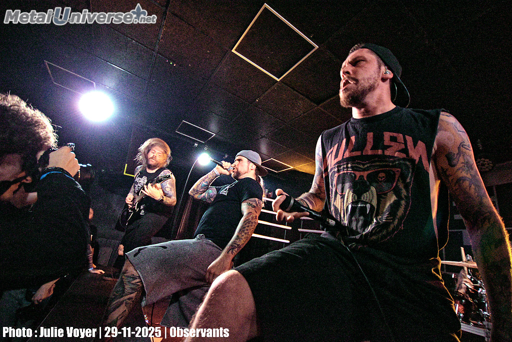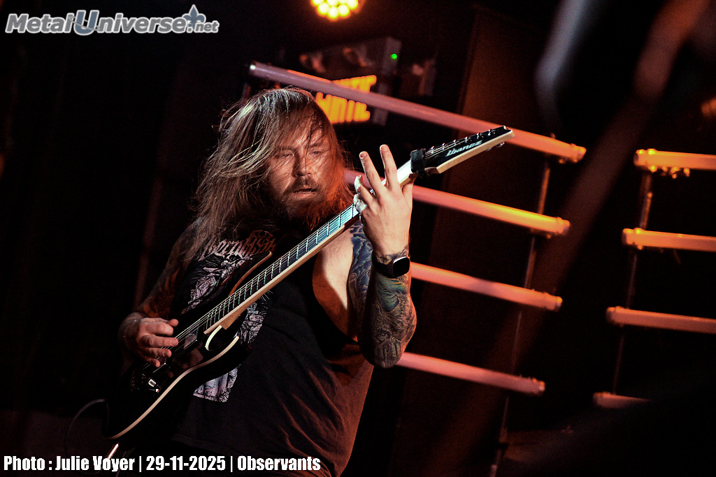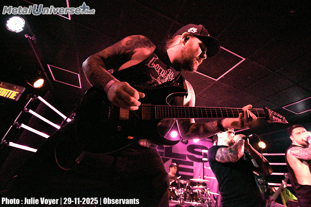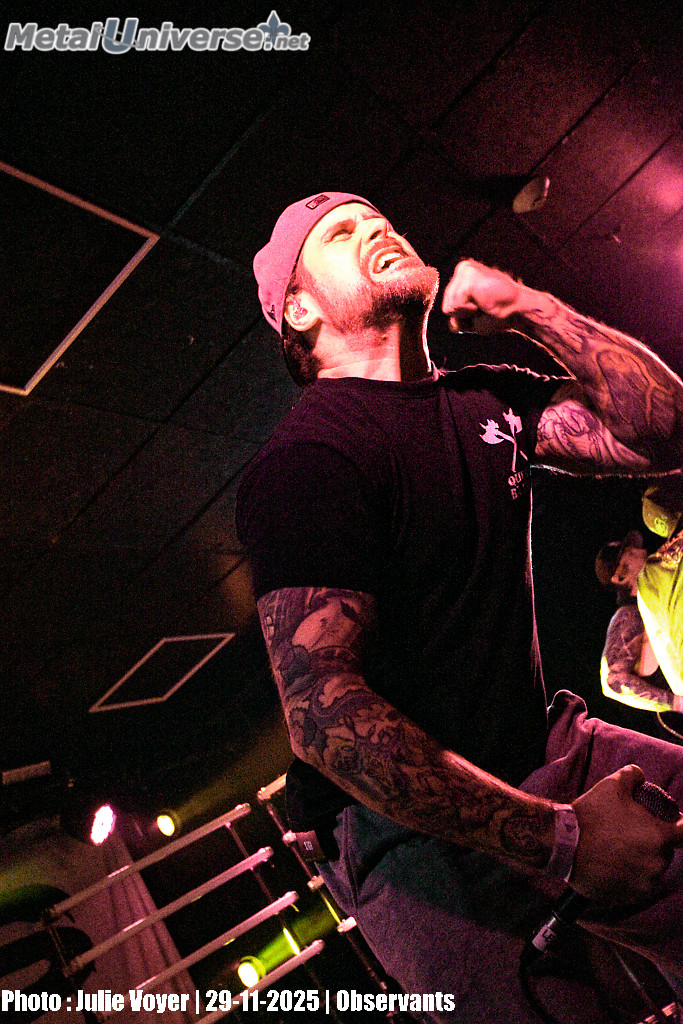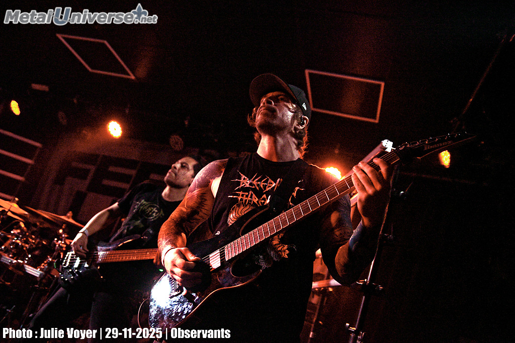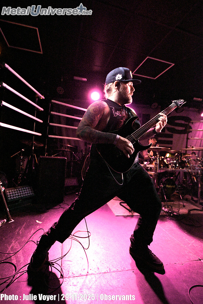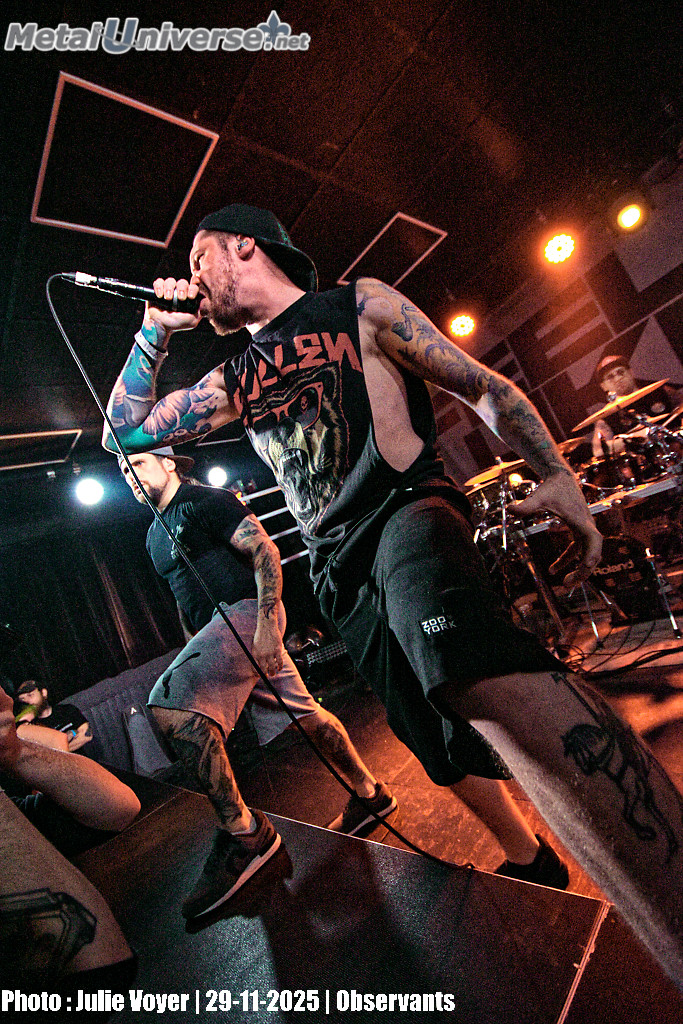 Ensuite c’est la formation nombreuse d’Observants qui embarque sur scène et fait bouger tout le monde avec leur son captivant. La setlist intéressante débute avec “Phoenix”, l’ouverture dramatique de leur dernier EP, et se clôt avec une de mes favorites “Supreme Being”, du premier EP. Leur mélange de symphonie, de mélodie, de lourdeur, de rapidité et d’agression inspirée d’une guerre d’extraterrestres se marie efficacement pendant tout le show, en particulier dans la pièce “Resilience”. Le show passe vite, car il n’y a pas de vrai répit dans le catalogue d’Observants, et les moshpitteurs font de leur mieux pour suivre avec la même intensité.
