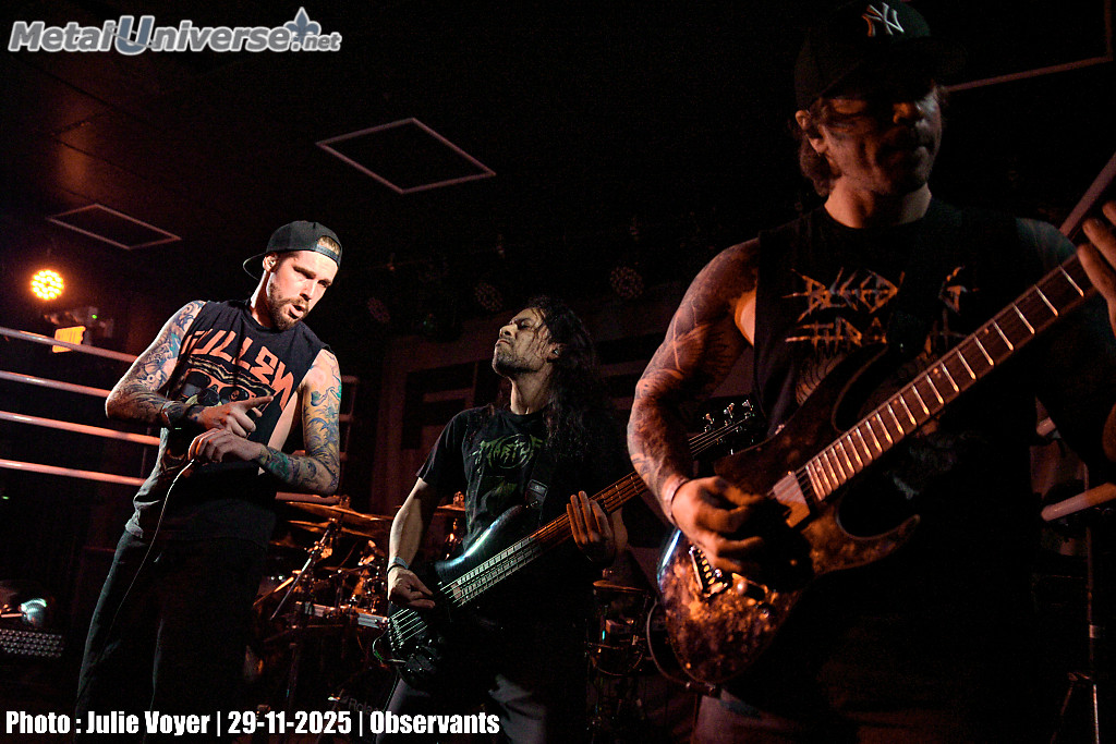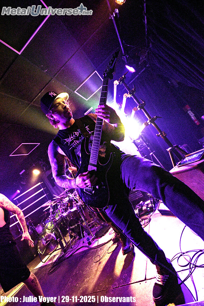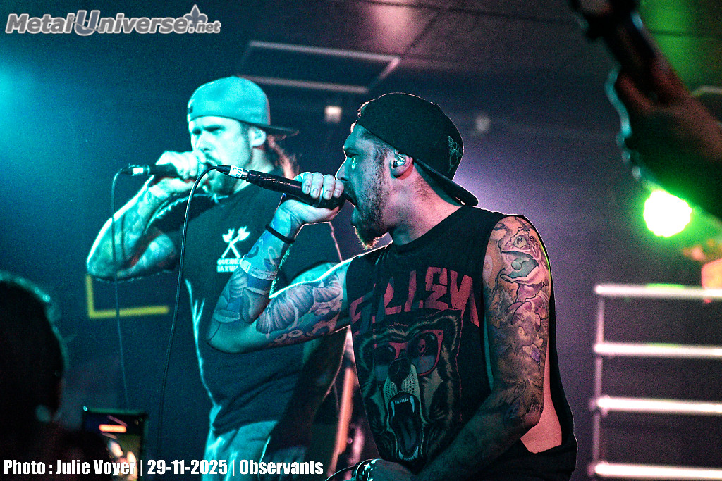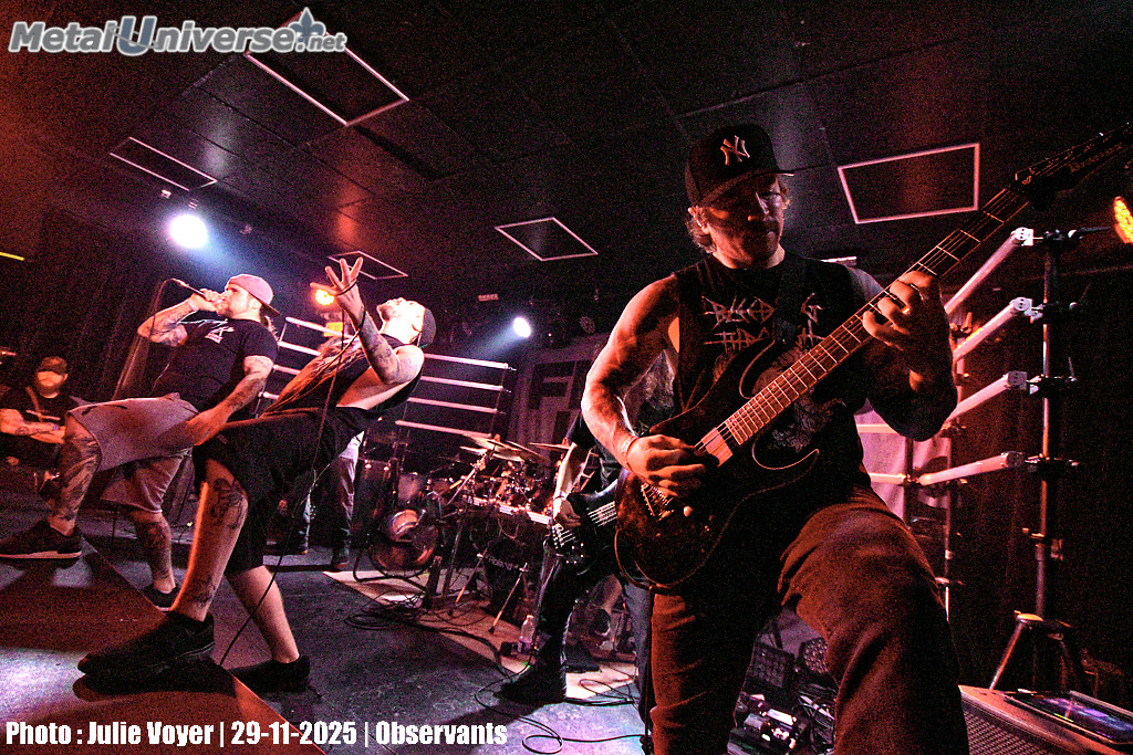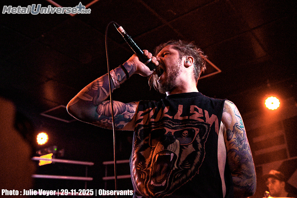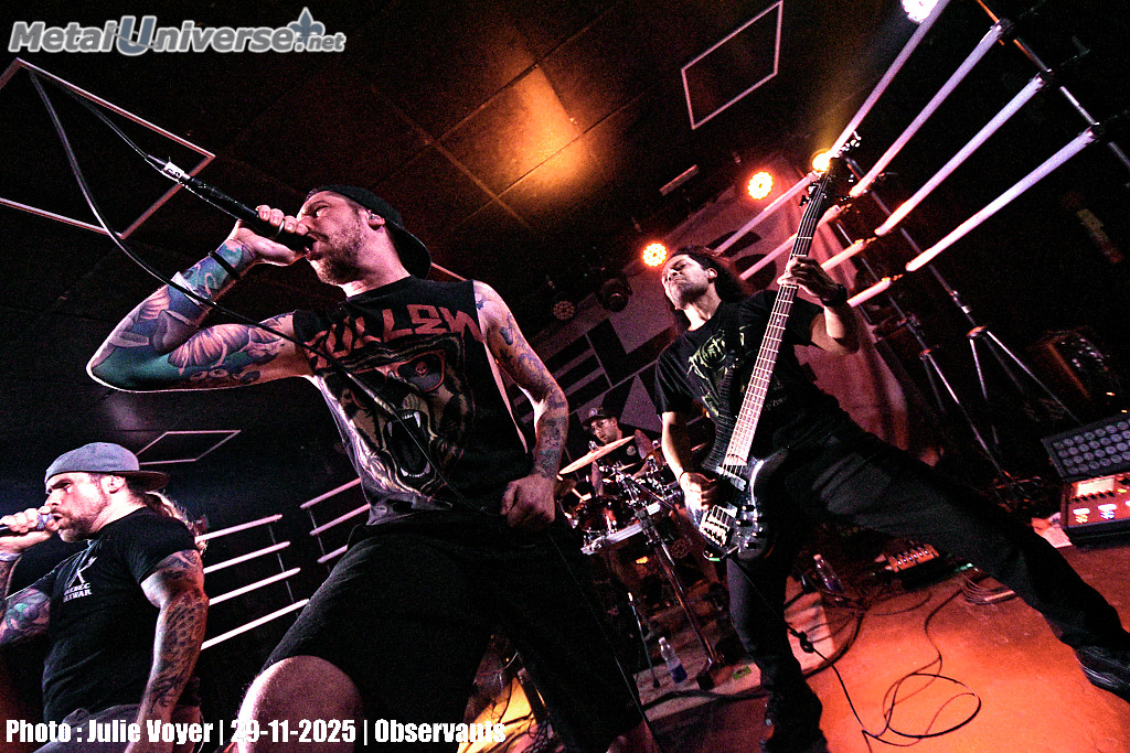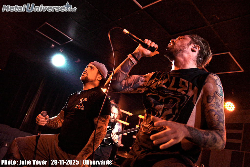 Ensuite c’est la formation nombreuse d’Observants qui embarque sur scène et fait bouger tout le monde avec leur son captivant. La setlist intéressante débute avec “Phoenix”, l’ouverture dramatique de leur dernier EP, et se clôt avec une de mes favorites “Supreme Being”, du premier EP. Leur mélange de symphonie, de mélodie, de lourdeur, de rapidité et d’agression inspirée d’une guerre d’extraterrestres se marie efficacement pendant tout le show, en particulier dans la pièce “Resilience”. Le show passe vite, car il n’y a pas de vrai répit dans le catalogue d’Observants, et les moshpitteurs font de leur mieux pour suivre avec la même intensité.