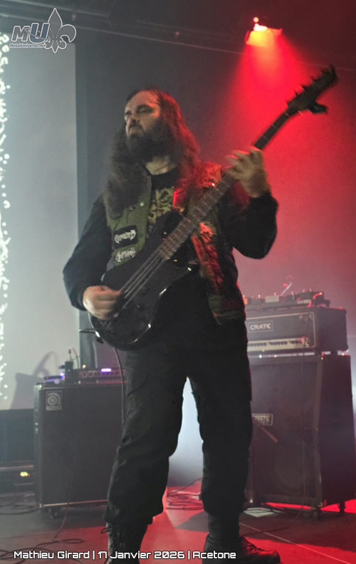 J’ai beaucoup accroché sur le son de la basse, omniprésente, qui perdurait après les chansons (très courtes, caractéristiques du grind) et qui faisait le lien entre les pièces. On a bien ri d’entendre la toune sur les filets de porc (sujet très peu exploité dans la communauté artistique). Leur énergie a starté le pit très tôt dans la soirée, ce qui est toujours très prometteur pour la suite.
