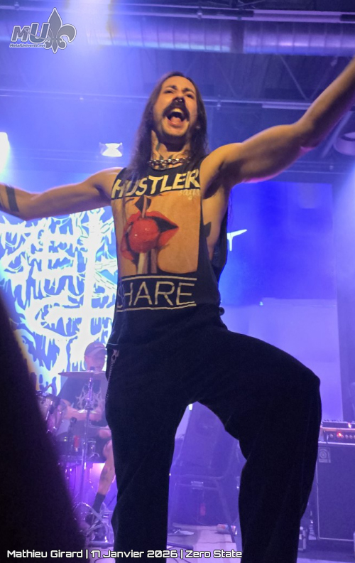 Maintenant, place aux 5 fous de Zero State ! Des bêtes de scène, on sent l’intensité monter de quelques crans ! J’étais à mon endroit de prédilection, c’est-à-dire en périphérie du pit, et j’ai dû garder un œil (voire les 2) pour ne pas être emporté… j’ai donc moins été concentré sur leur performance, mais je l’ai plus vécue en énergie qu’en mots. C’est peut-être la meilleure façon de les décrire, peu importe comment vous voulez assister à leur performance, ce sera à 150 %… J’ai même participé au WOOOOLL OFFF DESSSS !
