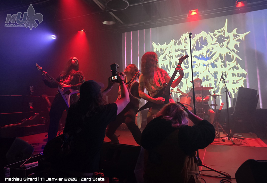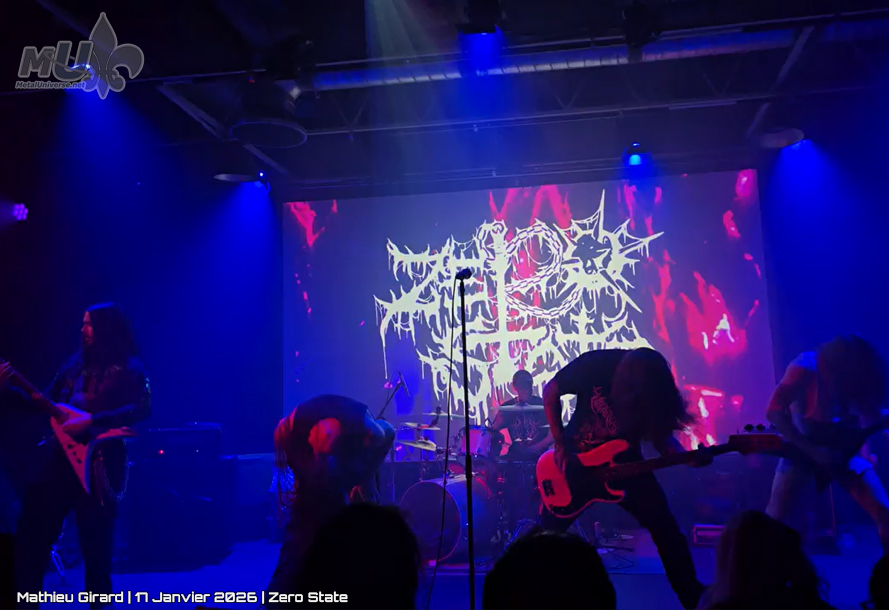 On commence l’année avec une soirée pas pour les doux. Pustulence nous ouvre le bal (avec leur première prestation à la maison), suivi par d’autres fiers Saguenéens : Acetone. Tout ça pour mettre en place la visite de la grande ville, Zero State.