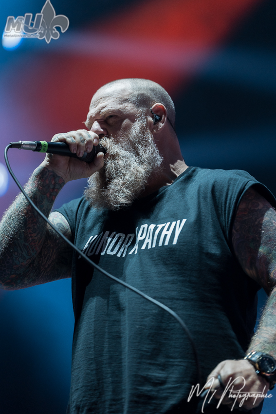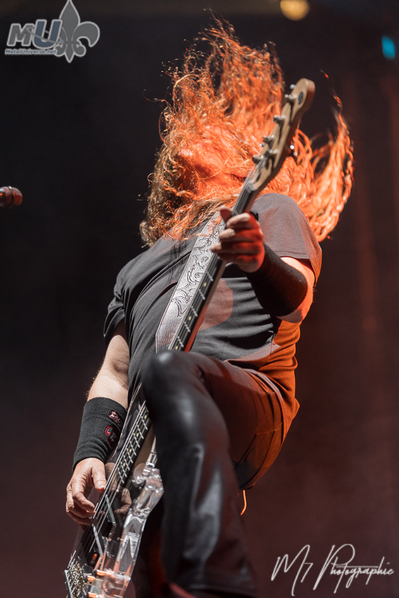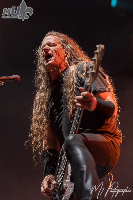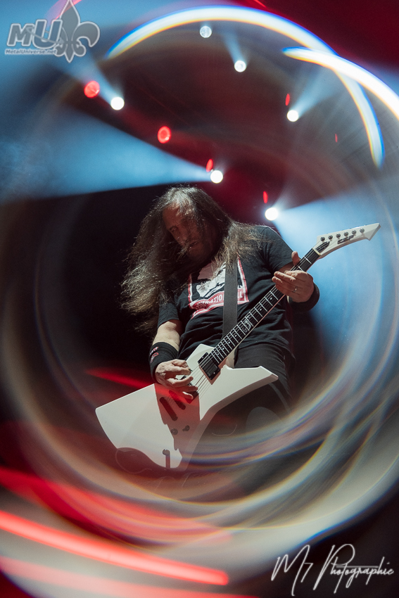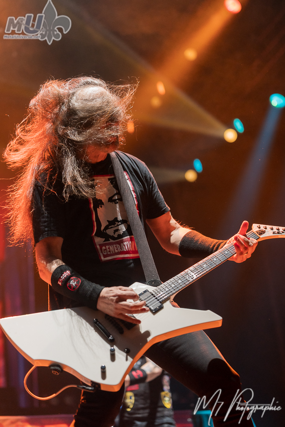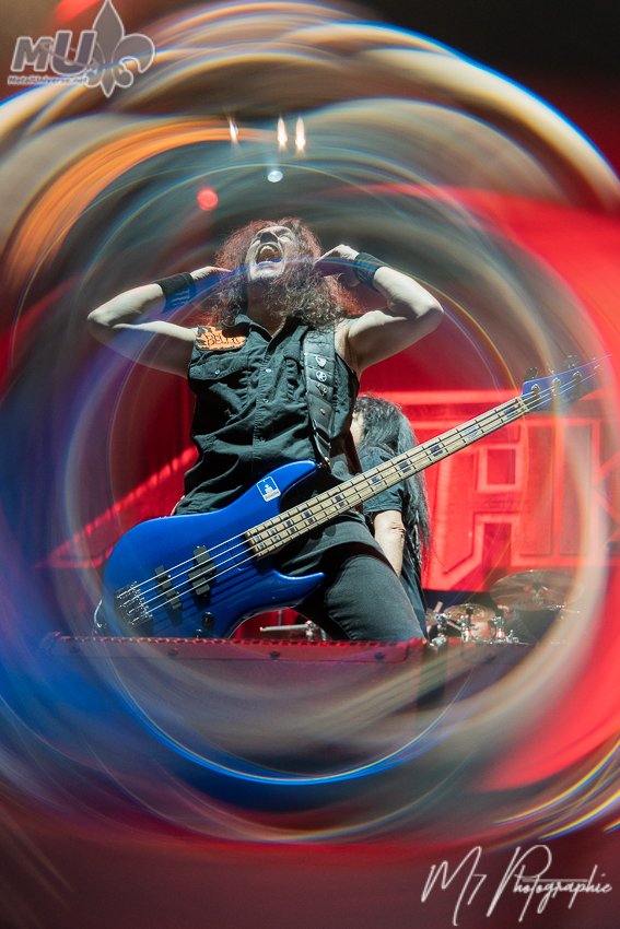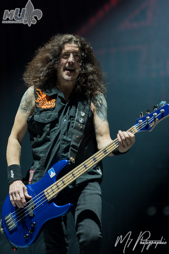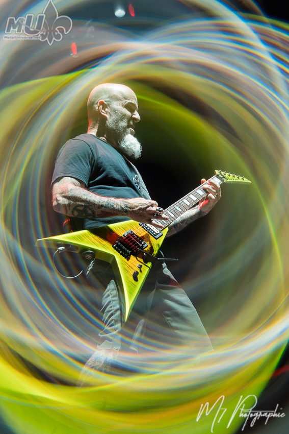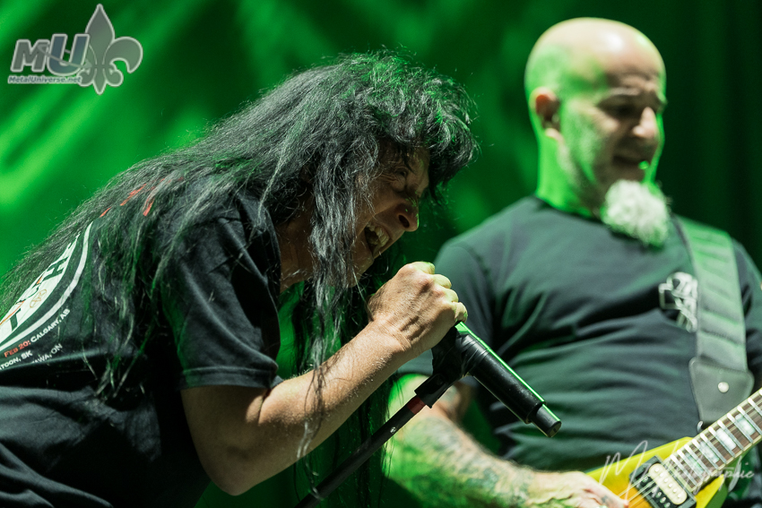Comme il l’a lui-même affirmé, il n’y a « aucun groupe plus responsable de l’existence d’Anthrax qu’Iron Maiden ». Il ajoute même que « s’il n’y avait pas eu Maiden, je ne sais pas si Anthrax aurait existé », soulignant aussi que « aucun autre groupe n’a eu une influence aussi importante sur Anthrax ». En mettant ceci de côté, les vétérans nous ont proposé leurs plus grands classiques, dont les incontournables Got The Time, Madhouse, Caught in a Mosh, le petit speech de Scott Ian avant I Am The Law, la populaire Antisocial. Cependant, l’atmosphère est plutôt spéciale et plusieurs l’ont fait remarquer. Est-ce en raison de l’âge (je m’inclus dans le lot)? Mais la foule n’était pas la plus énergique et participative tout au long de la soirée. Évidemment, on a eu les circle pits et tout, mais c’était assez tranquille en général. Néanmoins, le groupe a semblé bien aimer la réception des fans (et il donne encore tout un show). La soirée ne pouvait pas se terminer sans Indians, avec une petite visite de Rob Dukes d’Exodus. Cependant, c’est une autre chose qui a attiré l’attention. Tout juste avant, Anthrax a demandé si nous voulions entendre quelque chose de nouveau et ils ont fait environ 1 minute d’une nouvelle chanson, avant de nous dire que nous devrons attendre quelques mois pour la suite!