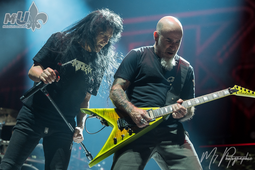 Que dire de Anthrax? J’ai eu la chance de les voir pour deux prestations lors du 70 000 Tons of Metal il y a à peine 1 mois et demi. Quelle a été la différence? Lors de la croisière, les membres étaient reposés, prenaient du bon temps et malgré le froid, l’énergie était encore plus au rendez-vous, les batteries étaient pleines à 100 %. À Québec, c’était une fin de tournée, et on le sentait. Est-ce que c’est négatif? Aucunement! Deux situations différentes qui n’empêchent pas de profiter de leur talent et énergie, puisque oui, il en restait. Un Joey Belladonna un peu plus fatigué que sur la croisière, mais toujours aussi excellent. Entouré de Scott Ian, Jonathan Donais, Frank Bello et Charlie Benante, Anthrax c’est rarement décevant. Une belle soirée de thrash metal comme ils savent si bien le faire. Anthrax a visiblement un grand amour pour Iron Maiden, notamment avec l’introduction de leur spectacle qui débute avec The Number of the Beast. Ce respect ne date pas d’hier. Le guitariste Scott Ian a déjà expliqué en entrevue à quel point Iron Maiden a été déterminant dans la naissance du groupe.