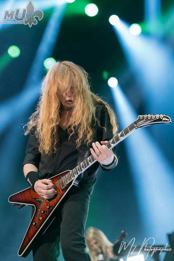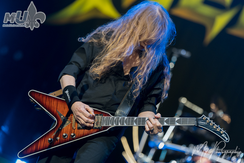 With their new album, Megadeth returned to Québec City. The main question: how would Dave Mustaine’s voice perform? Is there still fuel left in the tank? The simple answer: yes and no. Out of curiosity, I compared the setlists from 2023 and 2026, and aside from the new songs Tipping Point, I Don’t Care, and Let There Be Shred, the rest of the setlist was very, very similar. From the first seconds of Tipping Point, which opened the show, I got worried. I am not sure if it was a sound issue at the beginning or if Mustaine’s voice was still waking up, but we could barely hear anything. Fortunately, it adjusted after a while. The new songs are really good and there is no shame in adding them, especially Let There Be Shred, which I particularly like. Dave Mustaine also reminded us every chance he got that the singles and the album reached number one on the charts and how great it is to see the metal scene still healthy. Am I the only one who would have liked Ride the Lightning? Otherwise, we got the classics Hangar 18, Countdown to Extinction, Tornado of Souls, Symphony of Destruction, Mechanix, Peace Sells, and Holy Wars… The Punishment Due. In short, Megadeth usually sticks with their proven classics. As the show progressed, it became more noticeable how much Mustaine’s voice was losing strength. Age and fatigue play a role, and we must not forget that the older songs are not necessarily easy to perform, which is why he adapted his singing over the years. Musically, he has lost nothing. As for stage presence, he has always seemed a bit shy, so that is normal. For this twelve date tour, he was surrounded by bassist James Lo, drummer Dirk Verbeuren, and guitarist Teemu Mäntysaari from Wintersun. Let’s be honest, Mustaine has often surrounded himself well, so overall we got a very good show. A visit to Québec, so À Tout le Monde also had its place in the setlist, and it is always well received. Perhaps to be ready for Québec, Megadeth had also played it a few days earlier, only once, on February 28 in London, Ontario. For the record, and no, he did not say it was the last time Megadeth would play in Québec City.