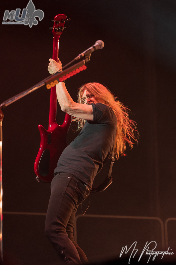 D’entrée de jeu, je vous demanderais: à quoi vous attendiez-vous exactement? Une tournée axée sur le nouvel album ou sur des adieux (qui n’ont jamais été mentionnés d’ailleurs, alors on peut mettre de côté cet aspect). Ce soir, on demeure dans la production la plus minimaliste possible. Pas d’écran géant, pas de feu, pas de tous ces petits à côté qui sont devenus si populaires. Et bien honnêtement, avec trois groupes aussi old school, pourquoi ne pas avoir ce genre de présentation plus simple à la bonne franquette?
