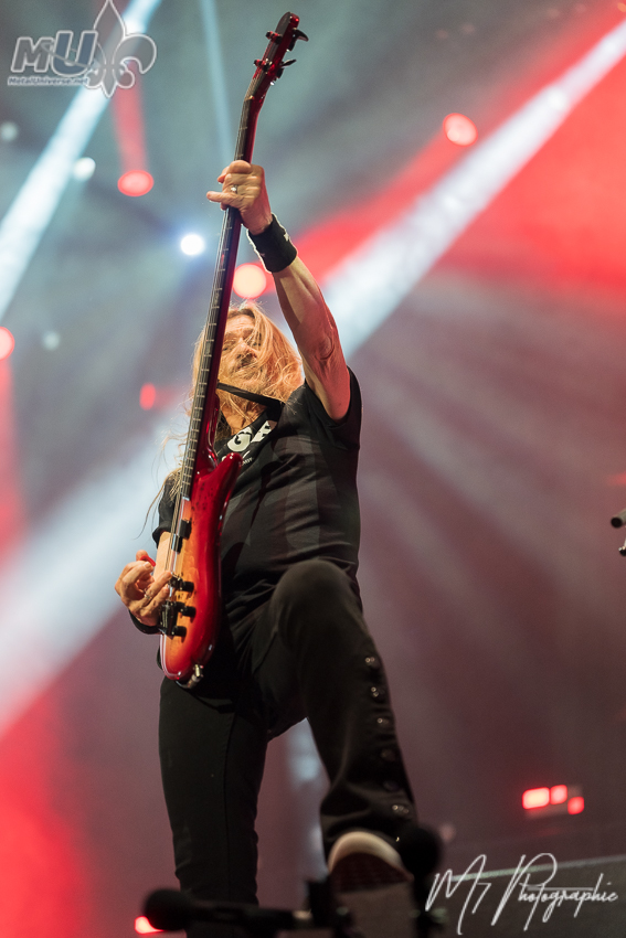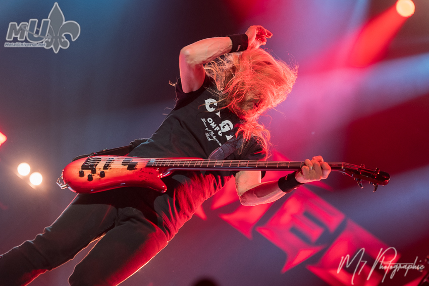 Les premiers à monter sur scène ont été la formation américaine Exodus. En toile de fond, l’illustration de leur plus récent album Goliath, un 13e album qui sortira le 20 mars prochain via Napalm Records. Avec seulement deux singles dévoilés, la pièce-titre et 3111, on sent déjà que le groupe a rechargé ses batteries. Avec le retour dans la formation de l’excellent chanteur Rob Dukes depuis l’année dernière, Exodus semble impossible à arrêter et semble avoir ravivé la flamme de nombreux fans. Seul bémol? On en aurait pris plus ce soir. Un petit We Will Rock You de Queen pendant que les musiciens débutent le show avec la nouveauté 3111, c’est un set de seulement 6 chansons. Ce fut bref, mais excellent. Que ce soit Bonded by Blood ou Strike of the Beast, Exodus a rapidement su créer une belle synergie avec la foule avec de bons échanges. Une prestation sans faille et même un petit clin d’œil à Raining Blood de Slayer avant The Toxic Waltz. Maintenant, Exodus doit revenir en tête d’affiche! (et ce n’est qu’une question de temps)