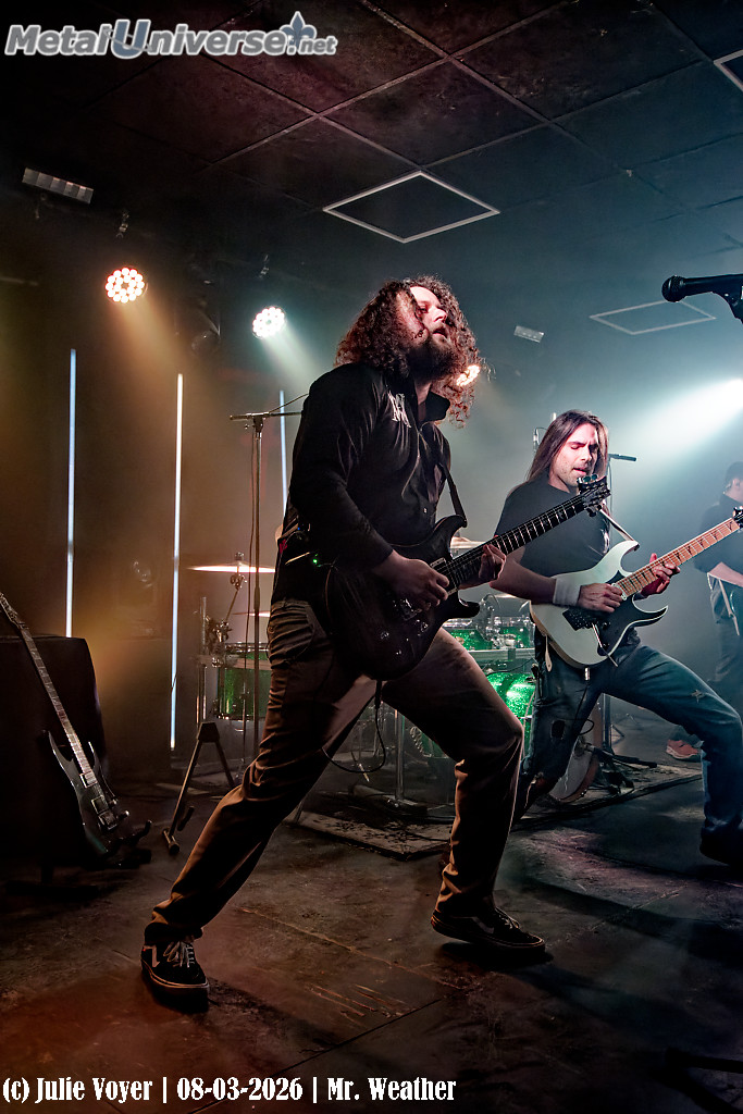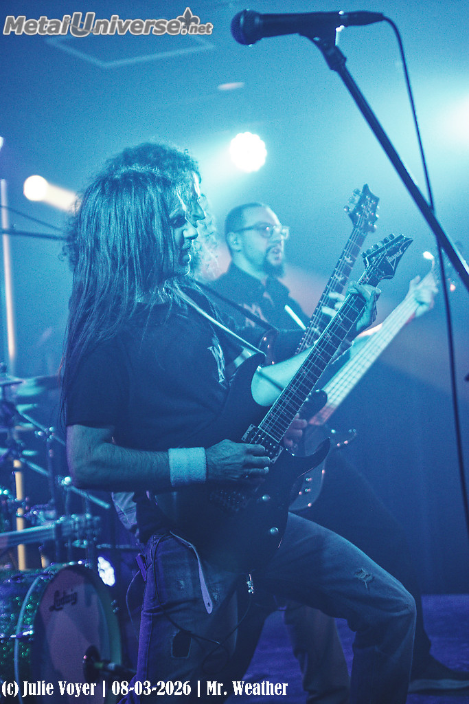 L’album, simplement intitulé 7, suit le même fil conducteur que les deux précédents, Between Dreams & Reality et Running From Hell, abordant des thèmes sociaux et politiques enveloppés d’un rock progressif penchant vers le metal mélodique. L’album 7 est le produit de trois années de labeur, outre le fait d’avoir eu, récemment, à composer avec le départ de Thomas, leur guitariste, et ensuite de leur batteur, Bashir. Ce soir, les nouveaux membres, soit Sylvain à la guitare et Patrice à la batterie, ont montré de quel bois ils se chauffaient : leur jeu était naturel et professionnel, comme s’ils faisaient partie du groupe depuis les débuts. Avec sourire, sérieux et application, ces messieurs Météo nous donc ont servi les neuf titres de 7, ainsi que quelques titres des albums précédents en guise de dessert. Encore une fois, j’ai passé une belle soirée en bonne compagnie, à encourager la scène locale.