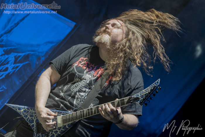 La formation floridienne Obituary suit ensuite, forte de près de 35 années de carrière bien senties. C’est un death metal assez traditionnel quoique très efficace que propose la formation américaine, mais pour une raison franchement obscure, la foule demeure stoïque, patientant peut-être pour la suite des choses. Au parterre, on note un certain mouvement, mais rien qui ne s’apparente même à ce qu’on a vu durant Frozen Soul. Il n’en demeure pas moins que les airs proposés par Obituary sont efficaces, bien rendus sur scène et qu’ils méritent d’être mis de l’avant dans un tel spectacle. On pourra par contre reprocher à Obituary de mettre tous ses oeufs dans le même panier; malgré une dizaine d’albums à leur actif, les Américains ne proposeront que des pièces de leur plus récente offrande et de Frozen Time, ce qui demeure un choix douteux. Le réchauffement se poursuit, et la foule semble maintenant prête pour les choses sérieuses!