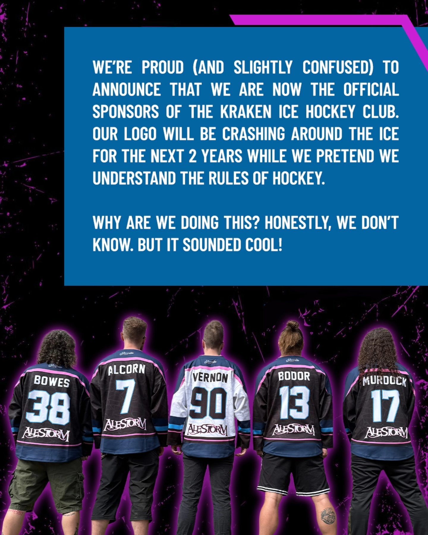 Dès maintenant, les joueurs du Kraken IHC patineront fièrement avec le logo d’ALESTORM bien en évidence sur leurs chandails. Le groupe promet déjà plusieurs frasques et idées farfelues autour de ce partenariat qui devrait durer quelques années.