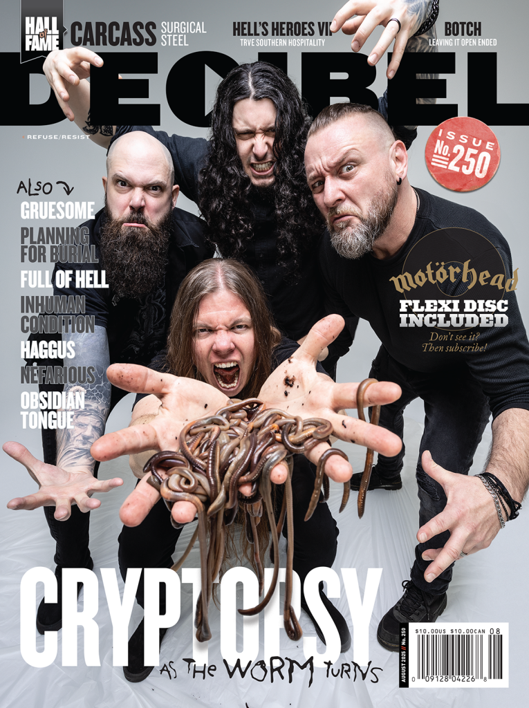 Decibel a annoncé que Cryptopsy est l’artiste en couverture de son 250e numéro. La photo, prise par Shimon Karmel, rend hommage à leur héritage en tant que groupe le plus ignoble du death metal. Les quatre membres du groupe se sont entretenus avec Justin M. Norton, collaborateur de longue date du magazine, pour discuter du concept étrangement prémonitoire derrière An Insatiable Violence et de la façon dont ce nouvel album s’inscrit dans la relance actuelle de Cryptopsy.