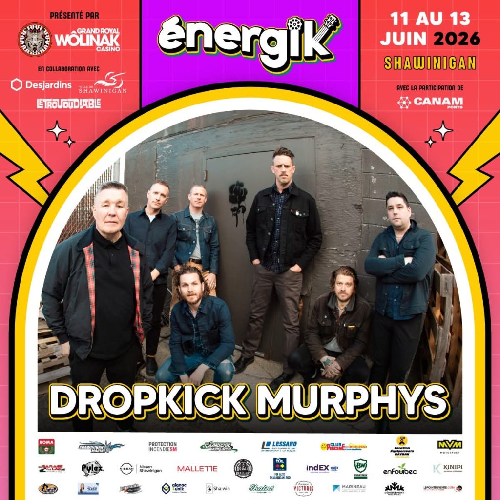 Le Festival Énergik frappe fort pour son édition 2026, qui se déroulera du 11 au 13 juin, en ajoutant les Dropkick Murphys à sa programmation déjà très attendue. Véritables icônes du punk celtique, le groupe formé en 1996 à Boston s’est imposé mondialement grâce à sa fusion explosive de guitares entraînantes, de cornemuse et d’hymnes rassembleurs. Leur classique « I’m Shipping Up to Boston » demeure un incontournable de la scène punk moderne.